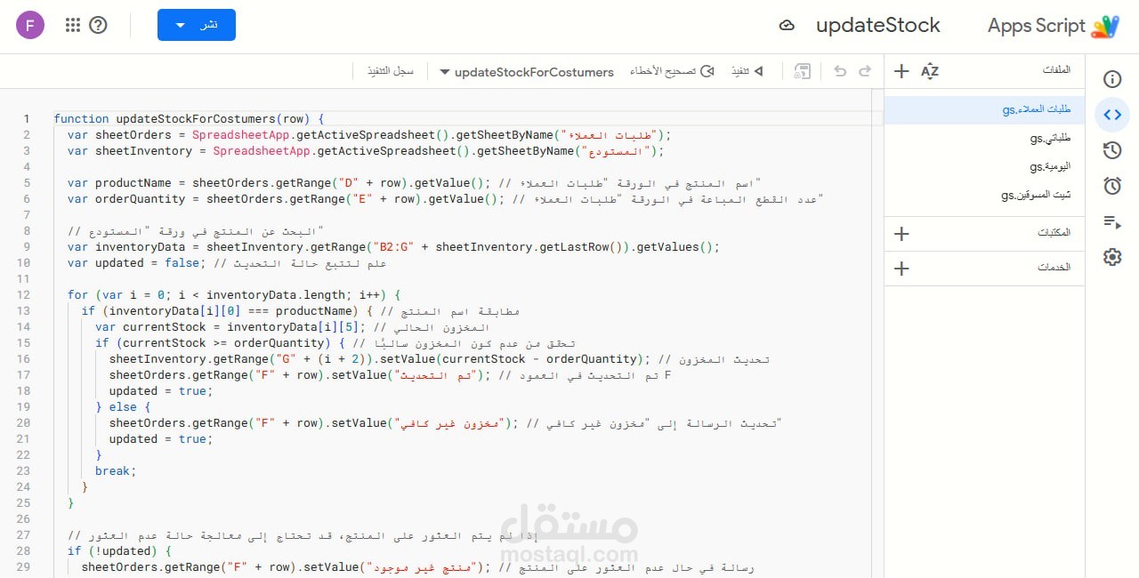 نظام إدارة المخزون والطلبات على Google Sheets باستخدام Google Apps Script