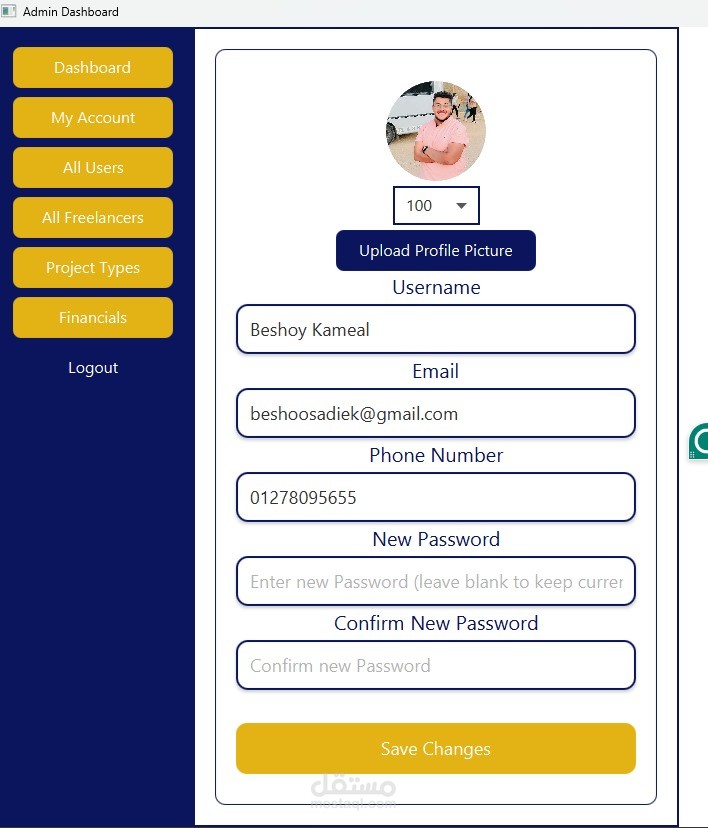 للفريلانسر: إنشاء حساب موثق بصورة شخصية، رفع مشاريعه مع إمكانية التعديل عليها لاحقًا، وإضافة بيانات التواصل (البريد الإلكتروني – رقم الهاتف) ليتواصل معه العملاء مباشرة.
