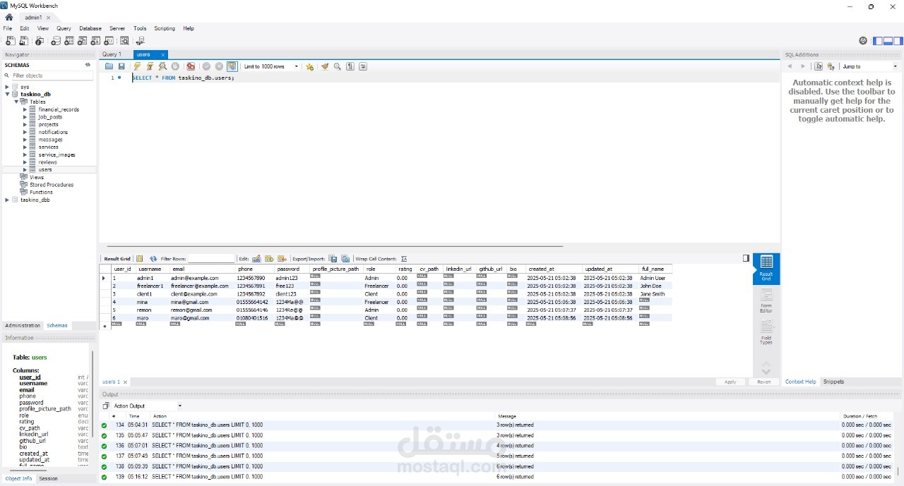 قاعدة البيانات: MySQL (Workbench)