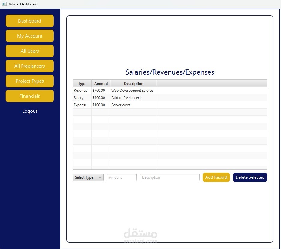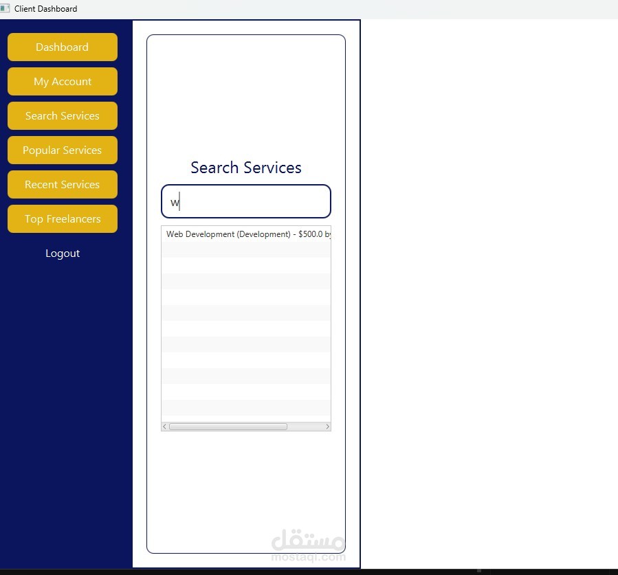 تطبيق سطح مكتب يهدف إلى ربط العملاء بالمستقلين بطريقة منظمة وفعّالة. يتيح النظام: