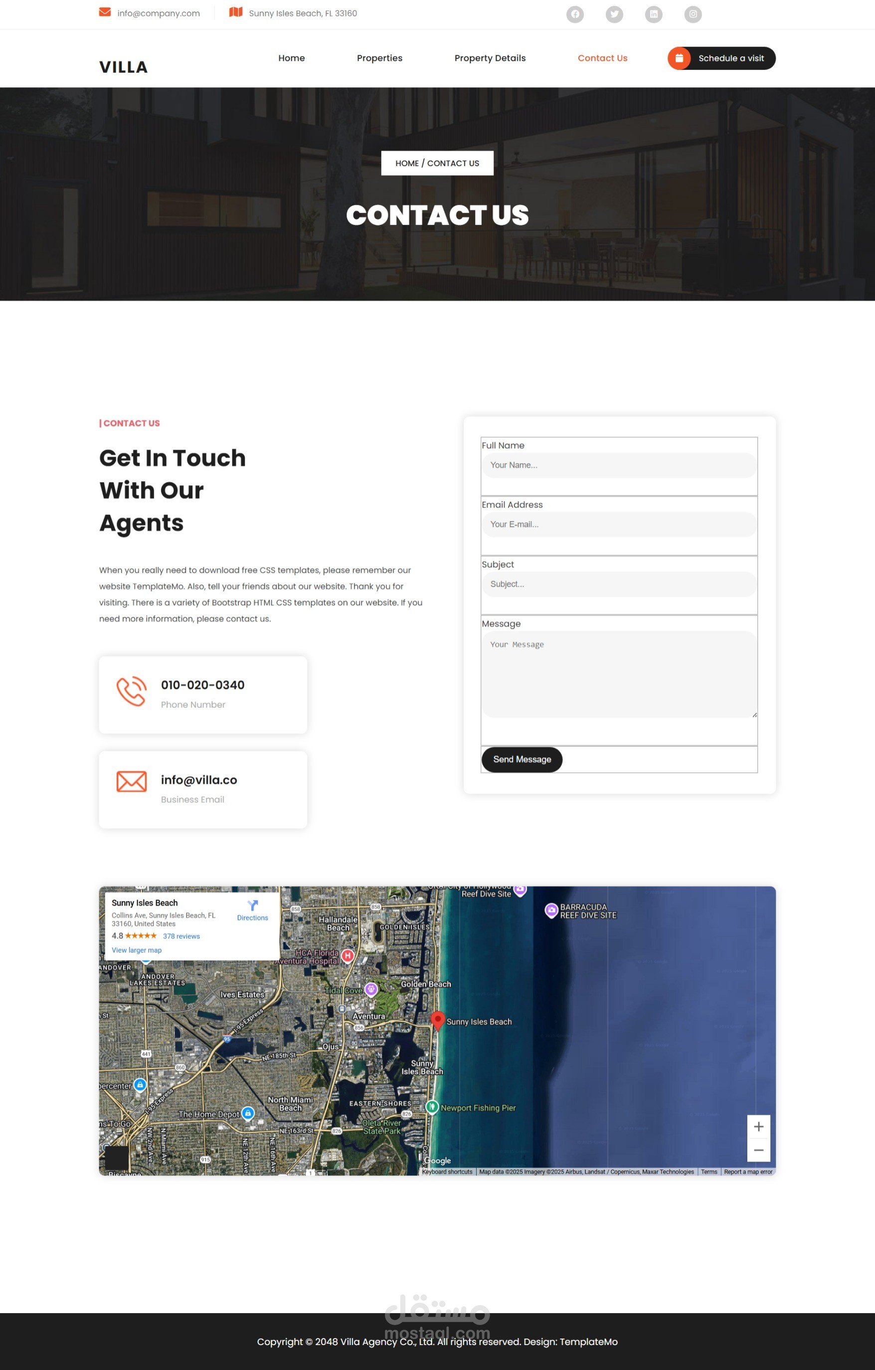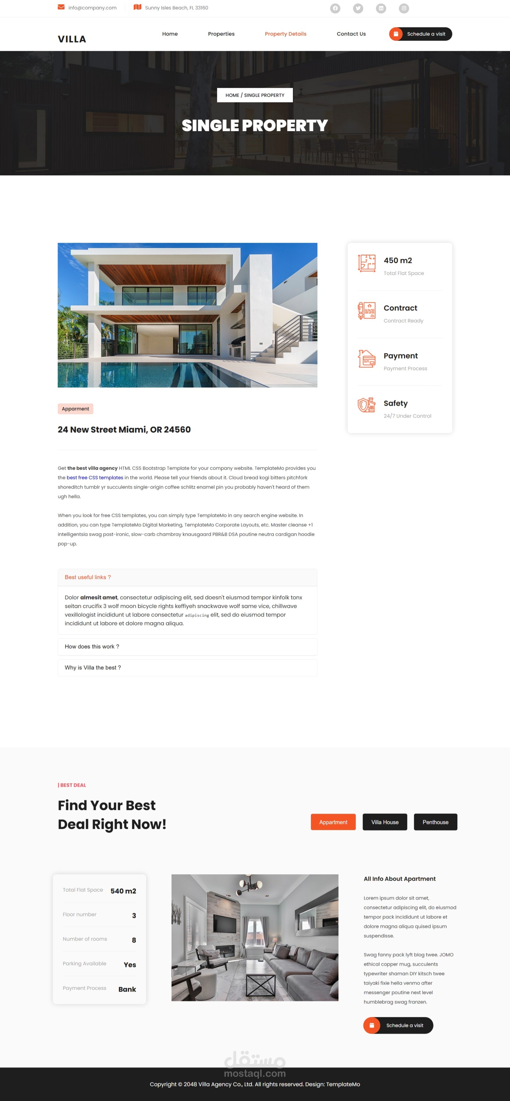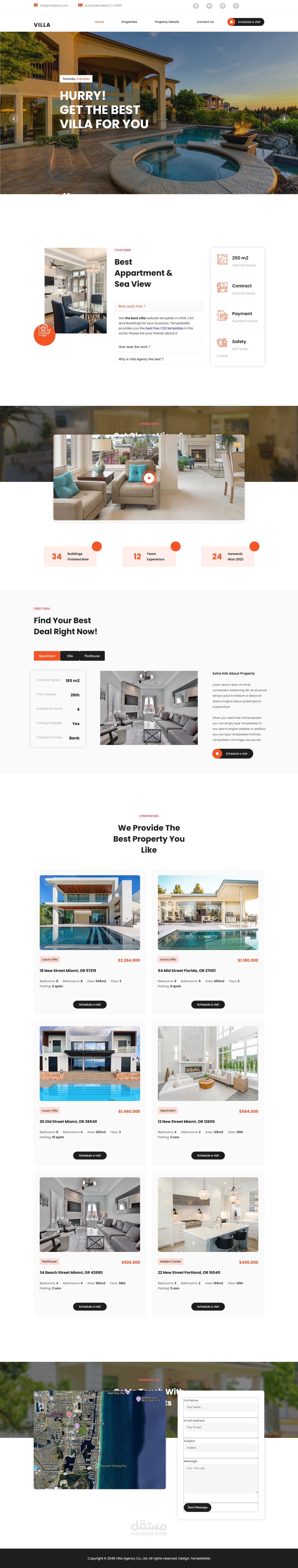 هذا المشروع عبارة عن قالب موقع إلكتروني مصمم باحترافية لوكالة عقارية متخصصة في عرض الفلل والمنازل الفاخرة. تم بناء القالب باستخدام