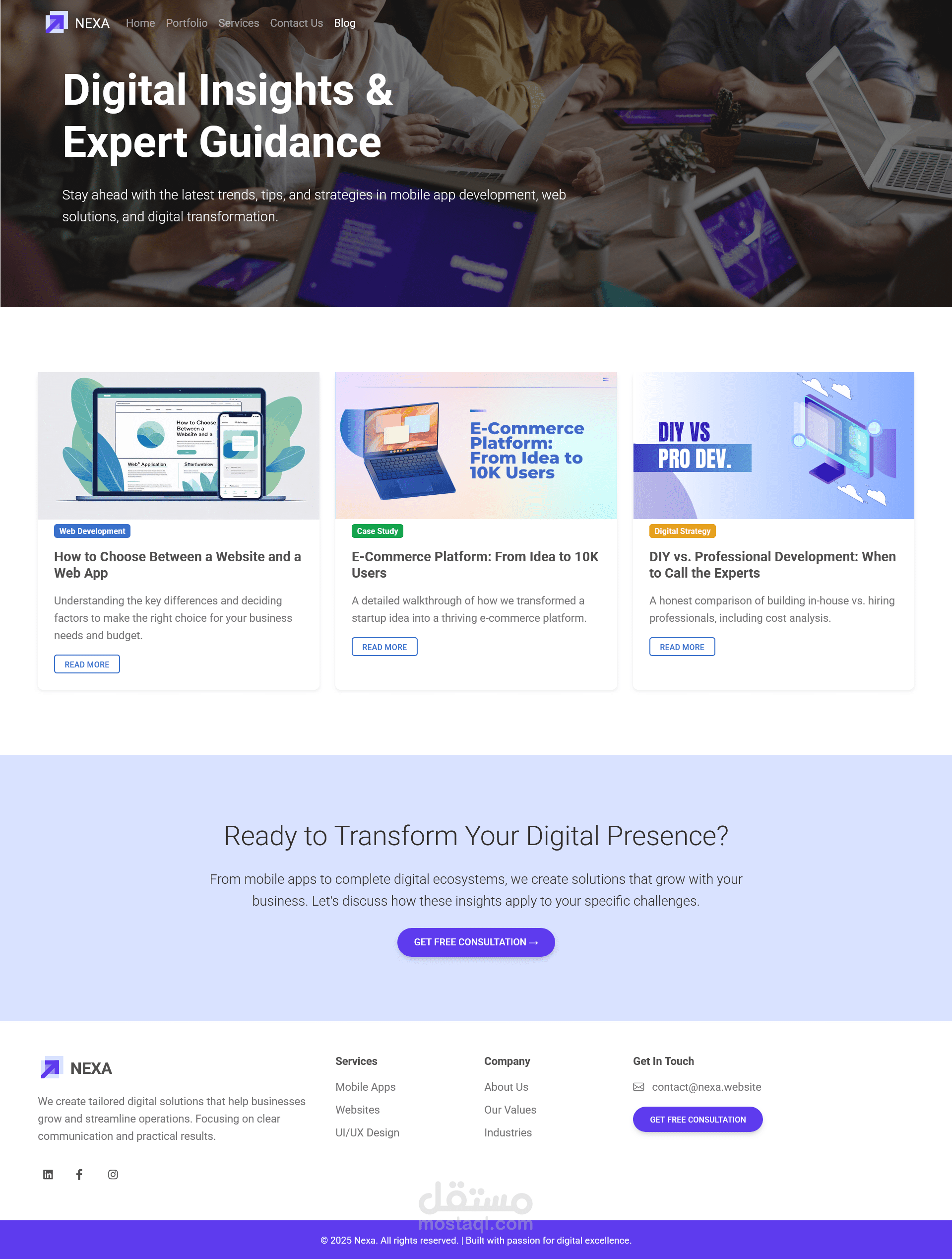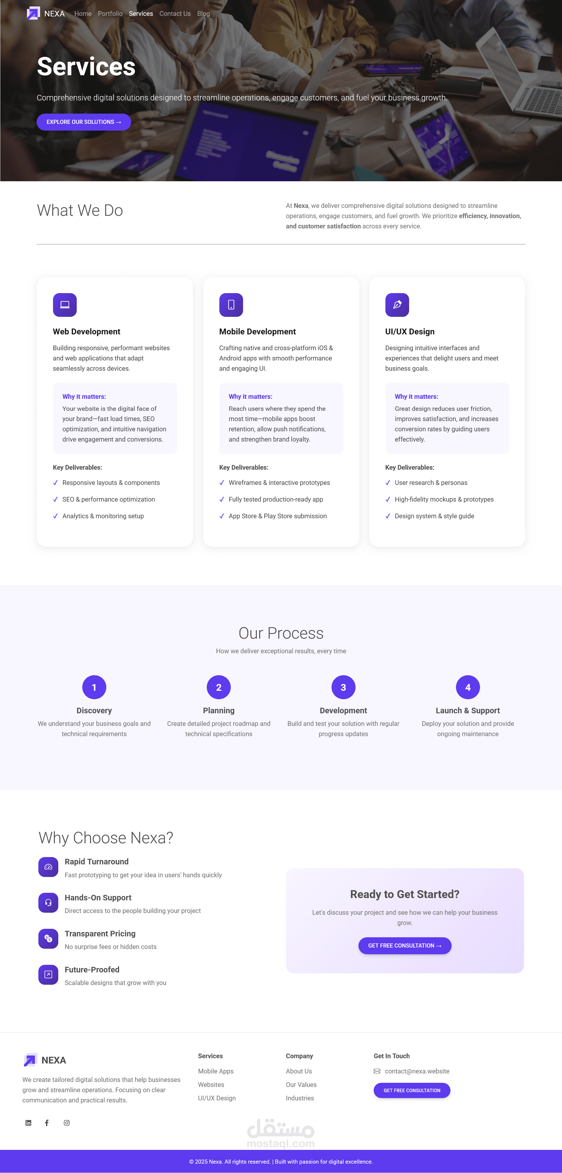 يقدم الموقع حلولاً رقمية مُصمّمة خصيصاً لمساعدة الشركات على النموّ وتبسيط عملياتها. تركّز على التواصل الواضح والنتائج العملية، ونُقدّم أدوات سهلة الاستخدام، رائعة المظهر، وتتجاوز التوقعات.