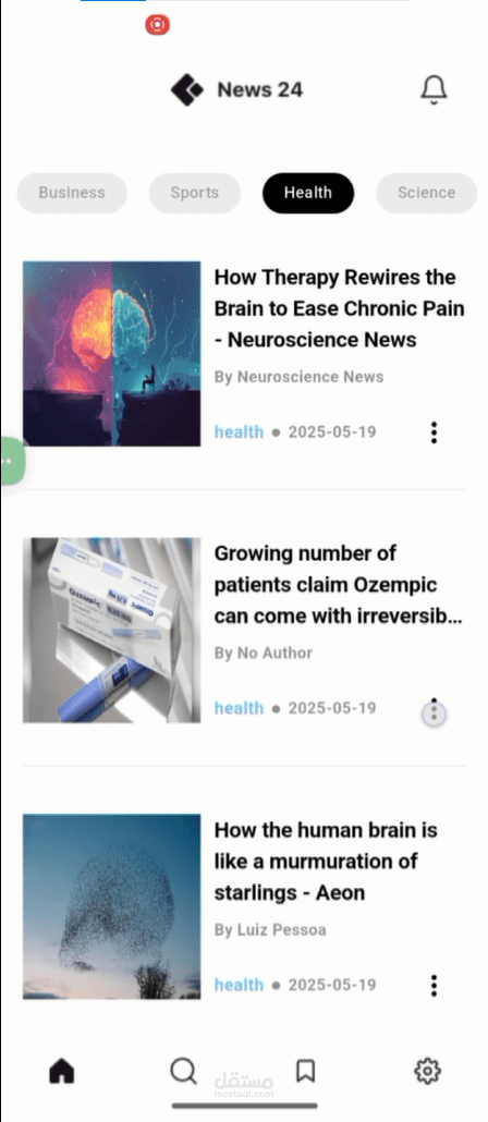 A Flutter-based news application that displays the latest articles from various categories such as business, health, and sports.