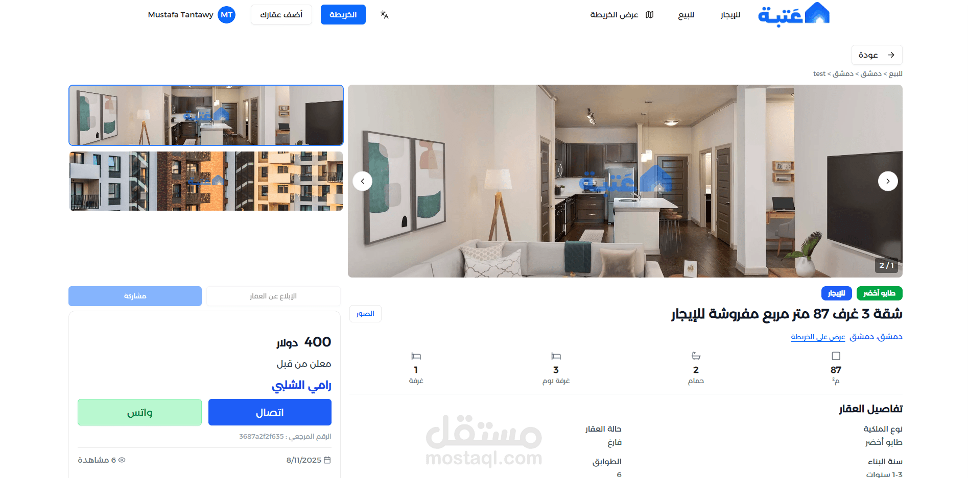 عرض تفاصيل العقار (المساحة، الغرف، السعر، الصور) بطريقة منظمة.