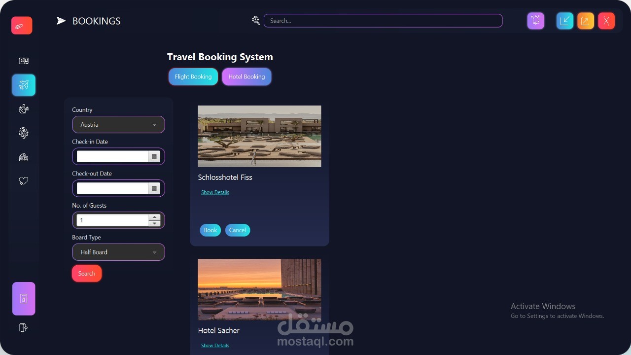 SkyWay Airport هو تطبيق بواجهة مستخدم رسومية (GUI) قائم على جافا، يتيح للمستخدم استكشاف مختلف البلدان وإجراء الحجوزات. سواءً رغب في حجز فندق أو رحلة طيران أو مرشد سياحي، سيجد في برنامجنا خيارات وفيرة. نظام SkyWay لإدارة المطارات هو تطبيق سطح مكتب قائم على JavaFX، مصمم لتبسيط عمليات المطارات، وتحسين تجربة المسافرين، وتوفير تحليلات سفر آنية. يتيح هذا التطبيق ذو واجهة المستخدم الرسومية (GUI) للمستخدم استكشاف مختلف البلدان وإجراء الحجوزات، سواءً رغب في حجز فندق أو رحلة طيران أو مرشد سياحي، سيجد في برنامجنا خيارات وفيرة، كل ذلك من خلال واجهة جذابة بصريًا وسهلة الاستخدام.