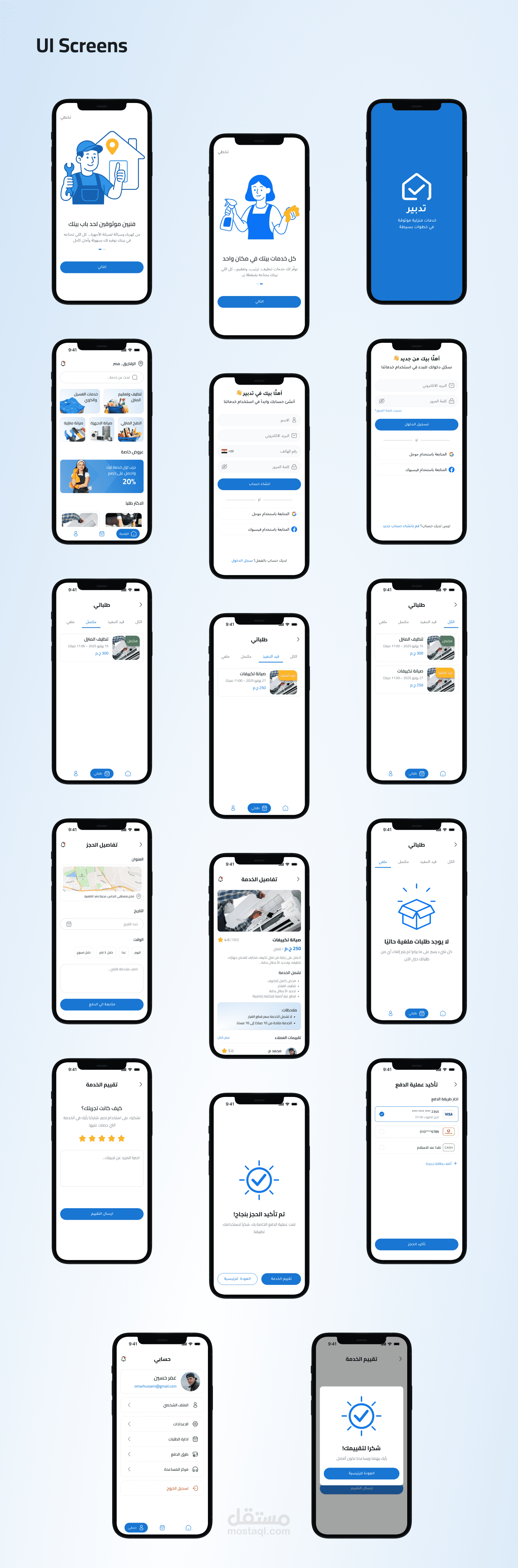 عملت على هذا المشروع وهو عبارة عن تطبيق موبايل للخدمات المنزلية يربط العملاء بمقدمي الخدمات لمجموعة متنوعة من الاحتياجات المنزلية مثل التنظيف والصيانة. يتيح التطبيق للمستخدمين تصفح الخدمات بسهولة، حجز المواعيد، والدفع بأمان. يركز التصميم على واجهة بسيطة وسهلة الاستخدام لضمان تجربة سلسة للعملاء.