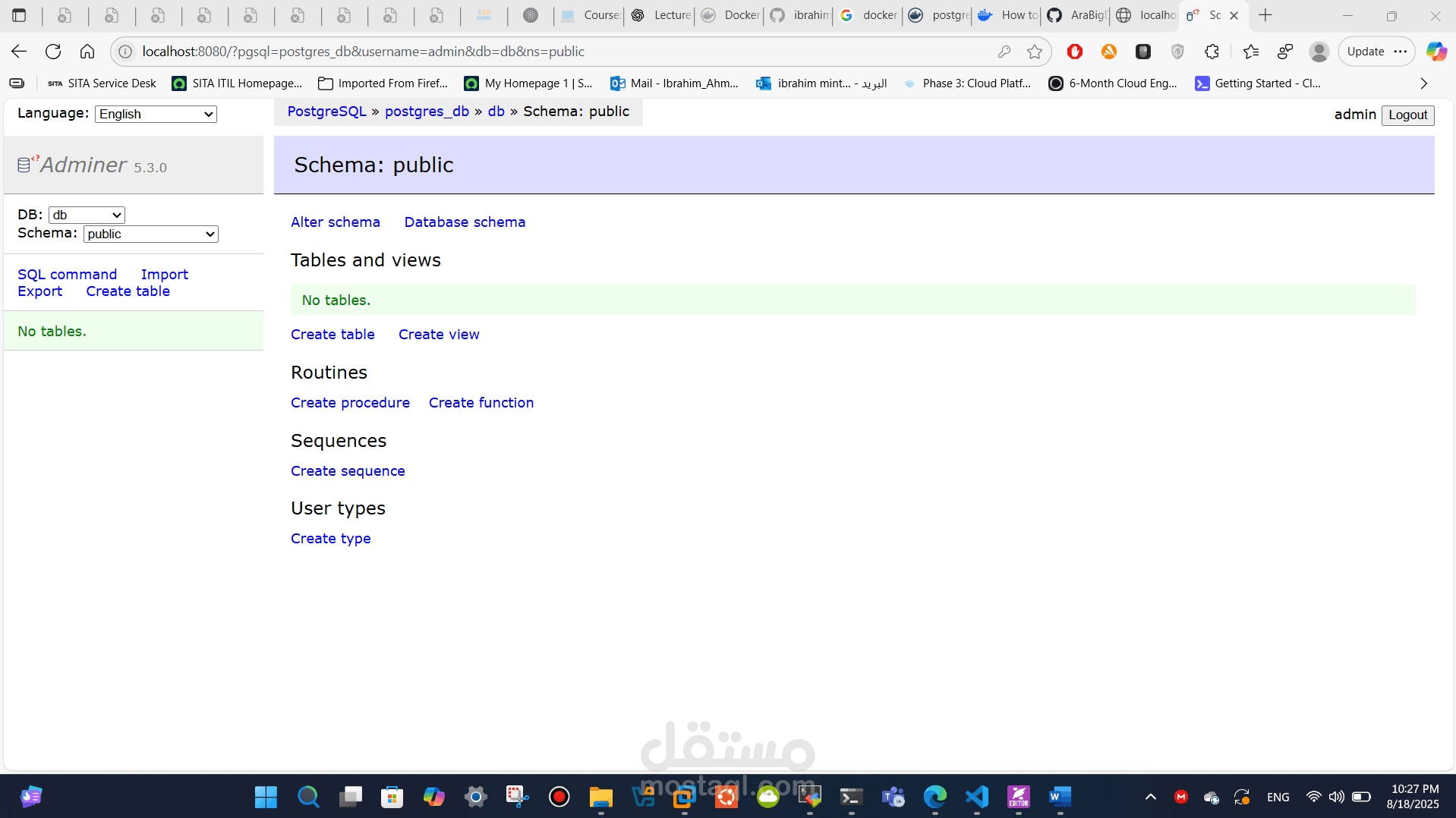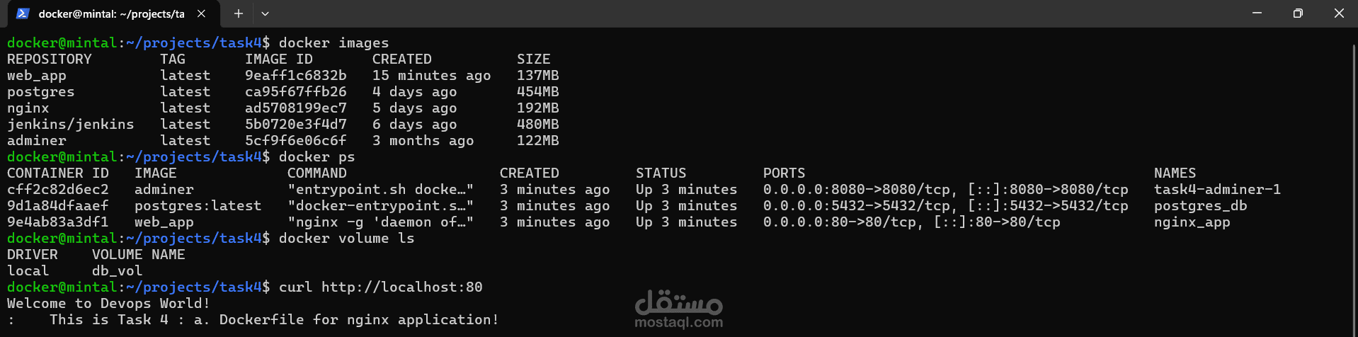 Containerized an nginx web app with Docker and built a multi-container stack (Nginx, PostgreSQL, Adminer) using Docker Compose, featuring persistent storage, custom networking, and CI/CD-ready setup.