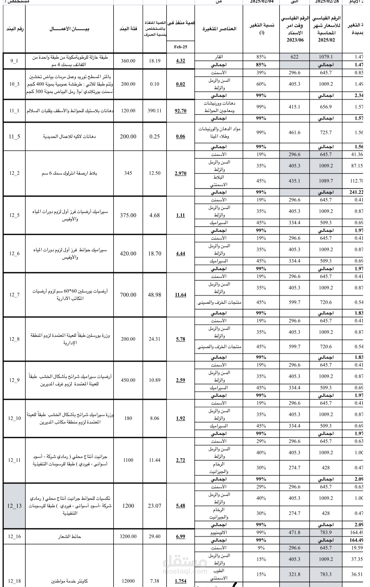 اعداد المقايسات وتسعيرها وحصر كميات المقايسه