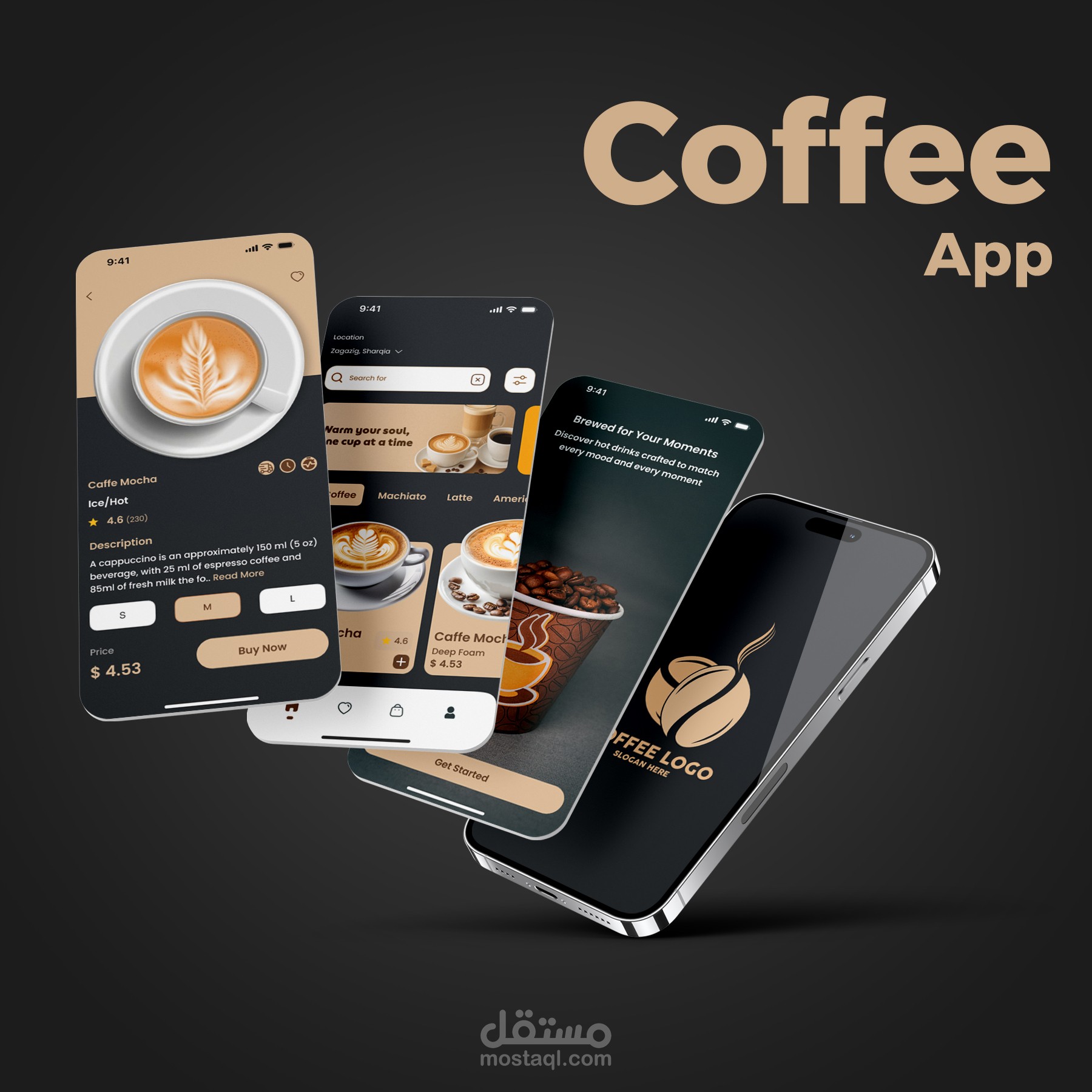 راعيت في التصميم إنشاء هوية بصرية مميزة للتطبيق باللون البني ودرجاته التي تعكس أجواء القهوة ودفئها.