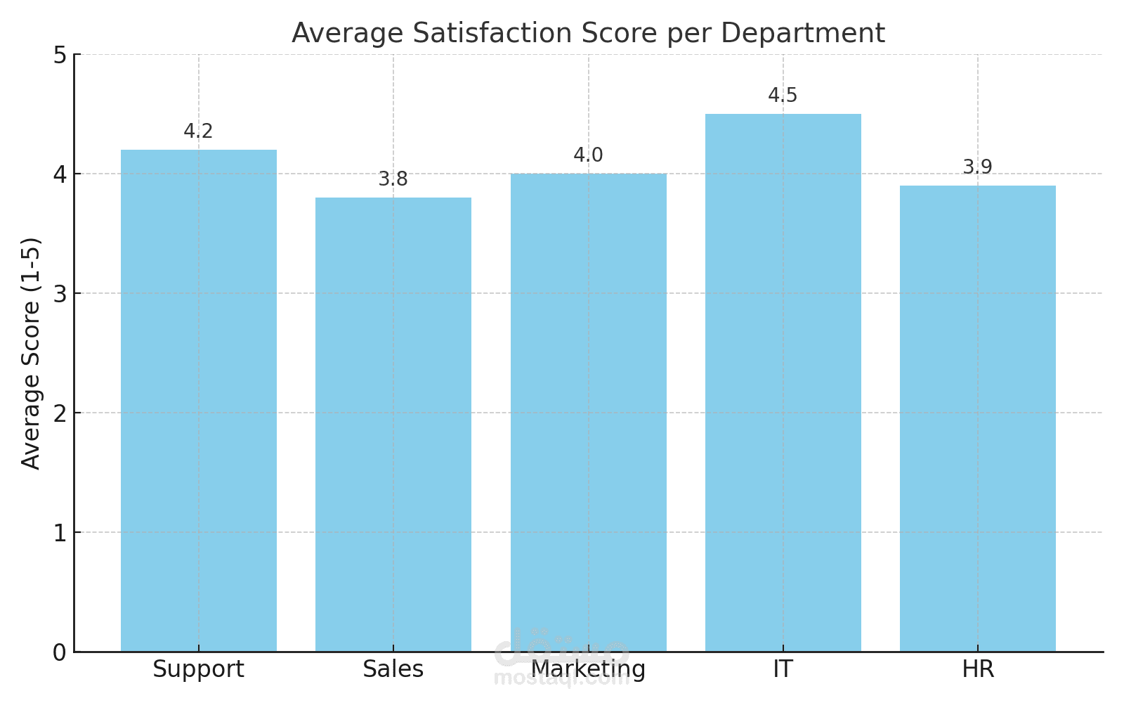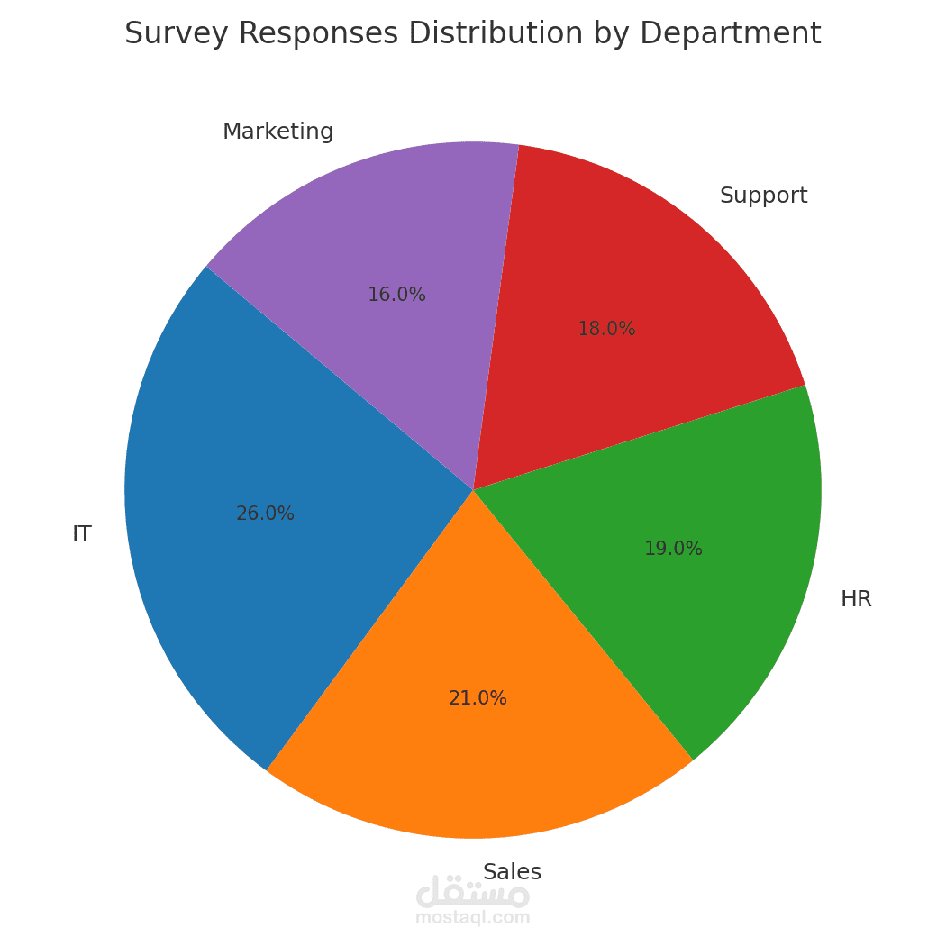 نموذج مبسط لتحليل بيانات استبيان حول رضا الموظفين عن الإدارات المختلفة (الدعم الفني – المبيعات – التسويق – الـ IT – الموارد البشرية).