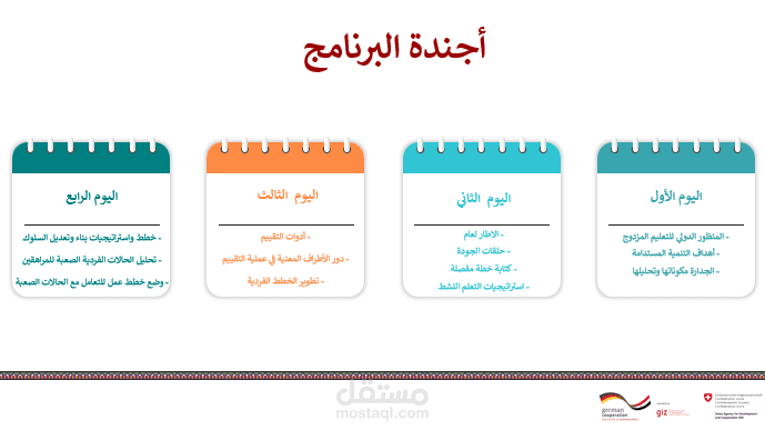 استخدام هوية بصرية واضحة تربط بين وحدات البرنامج وتخلي العرض مش مجرد Slides بل تجربة تعليمية بصرية.