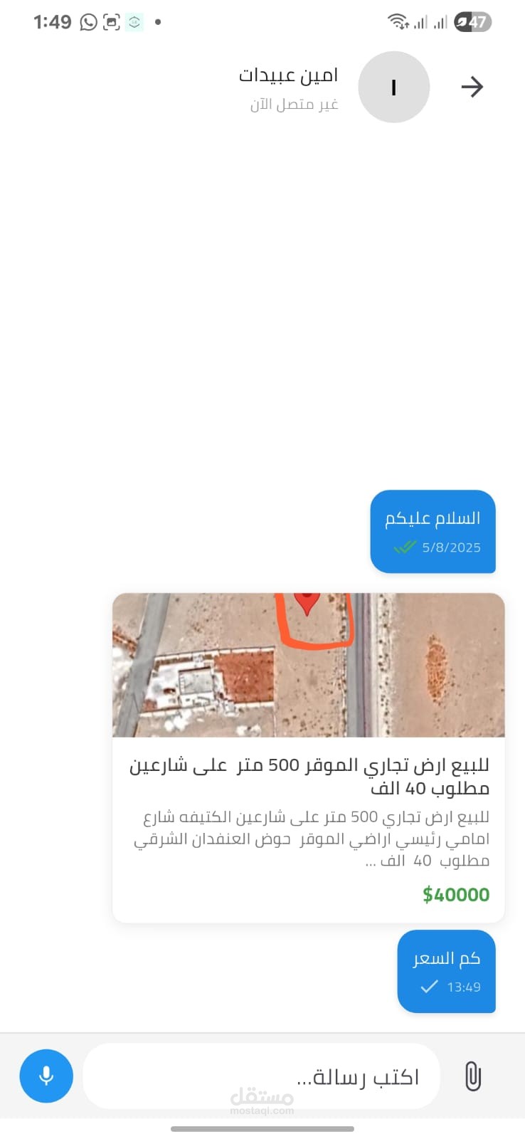 ويدخل المستخدم ويتصف التطبيق لحين وجود اعلان يلفت انتباهة ثم يتواصل مع البائع من خلال الشات الخاص بالتطبيق