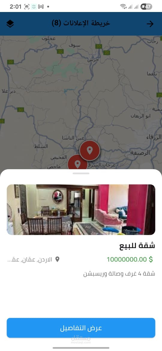 وايضا يوجد خريطة توضح الاعلانات القريبة منك وتستطيع ان تعرف المسافة بينك وبين الموقع قد اية