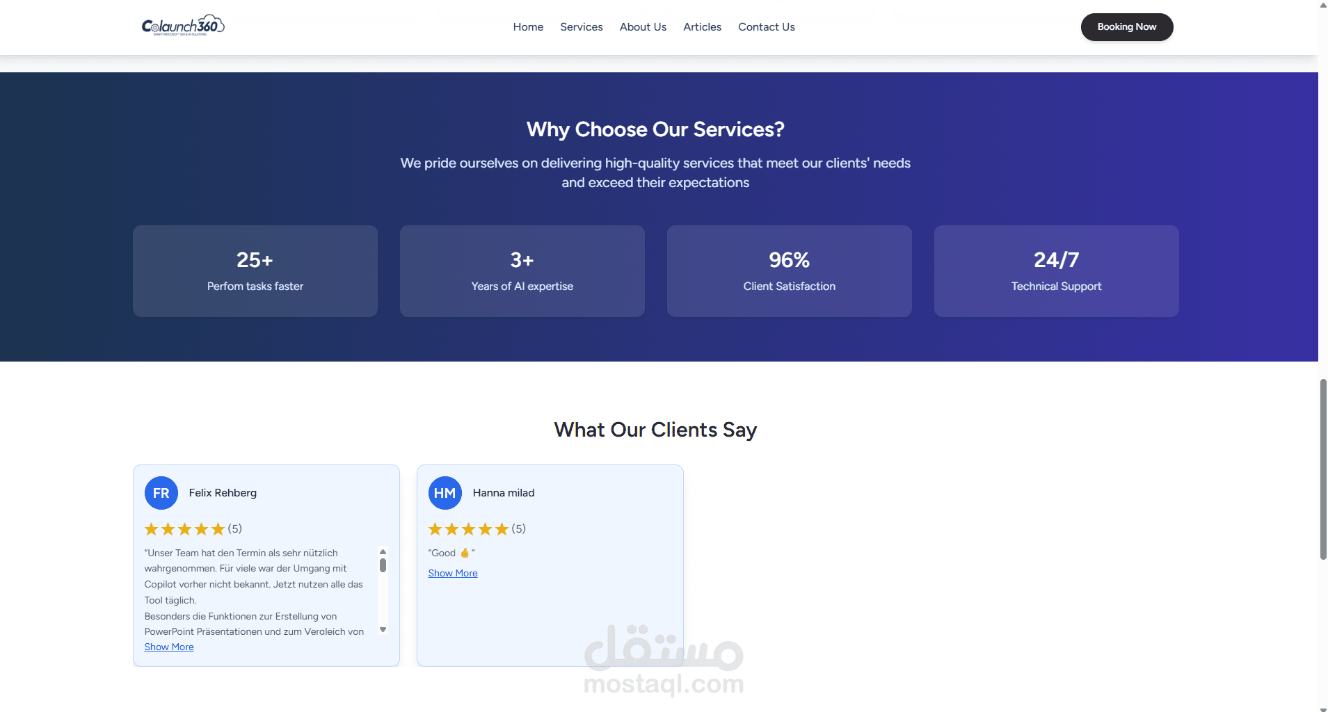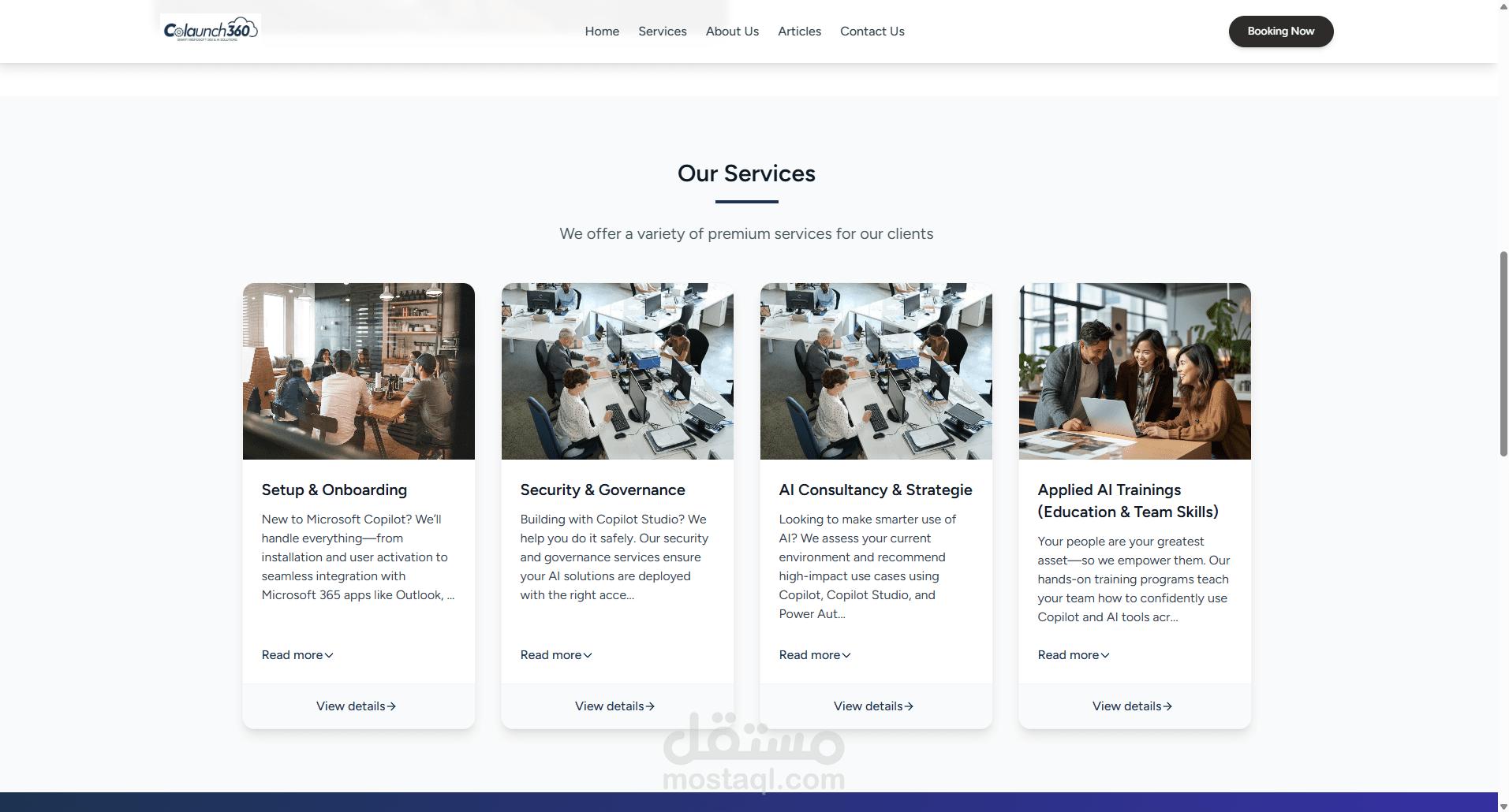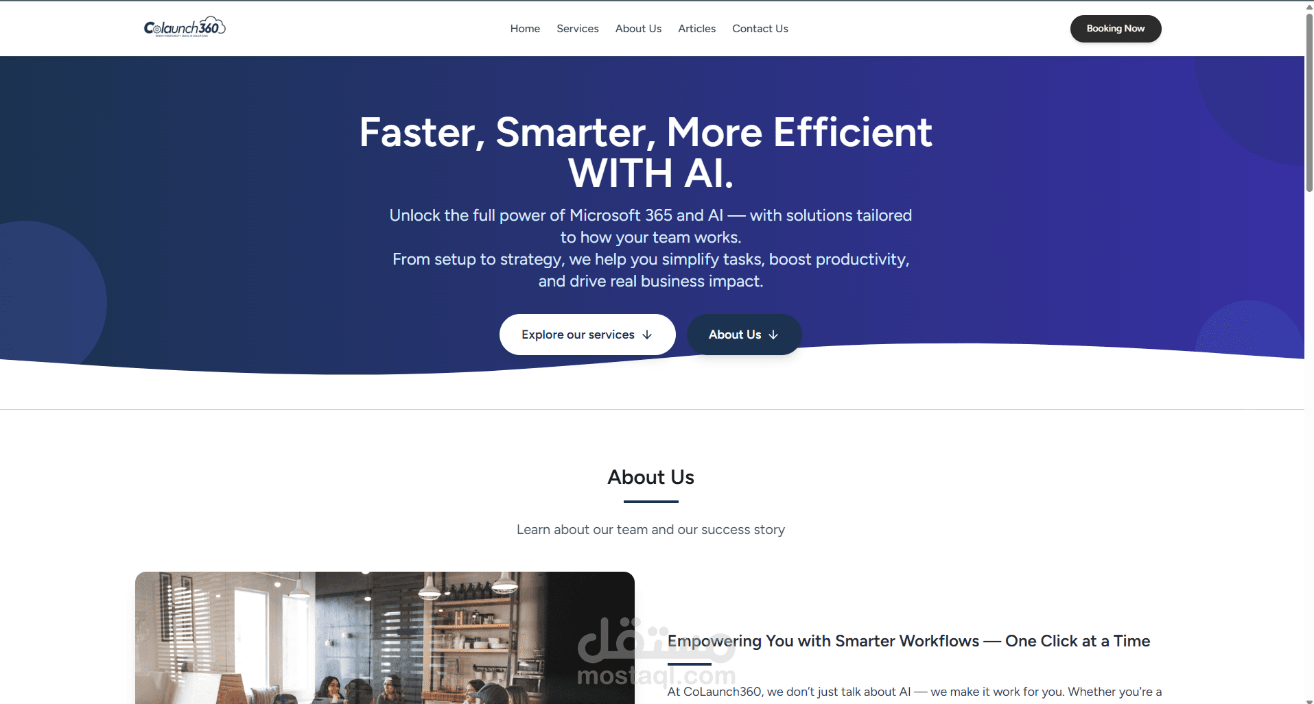 في هذا المشروع قمتُ بتصميم وتطوير الموقع الإلكتروني لشركة CoLaunch360، وهو منصة متخصصة في خدمات Microsoft 365 والذكاء الاصطناعي. اعتمدتُ واجهة مستخدم عصرية تجمع بين البساطة والاحترافية، مع اختيار ألوان حديثة وخطوط واضحة تعكس هوية العلامة التجارية. سُرِعتُ زمن التحميل وتحسَّنت تجربة المستخدم بشكل عام، مما يتيح تصفحًا سلسًا ومريحًا للزوار دون أي تعقيد. يتسم التصميم بالمرونة البصرية وروح الابتكار التقنية، حيث يجمع بين الجمالية والوظيفية ليلائم توقعات جمهور تقني ومتخصص.