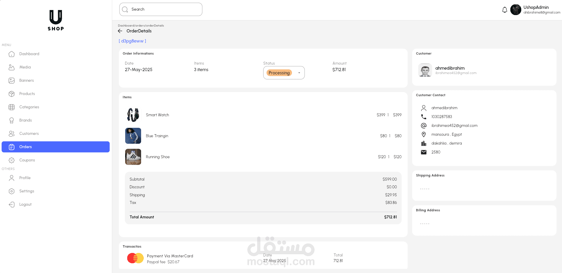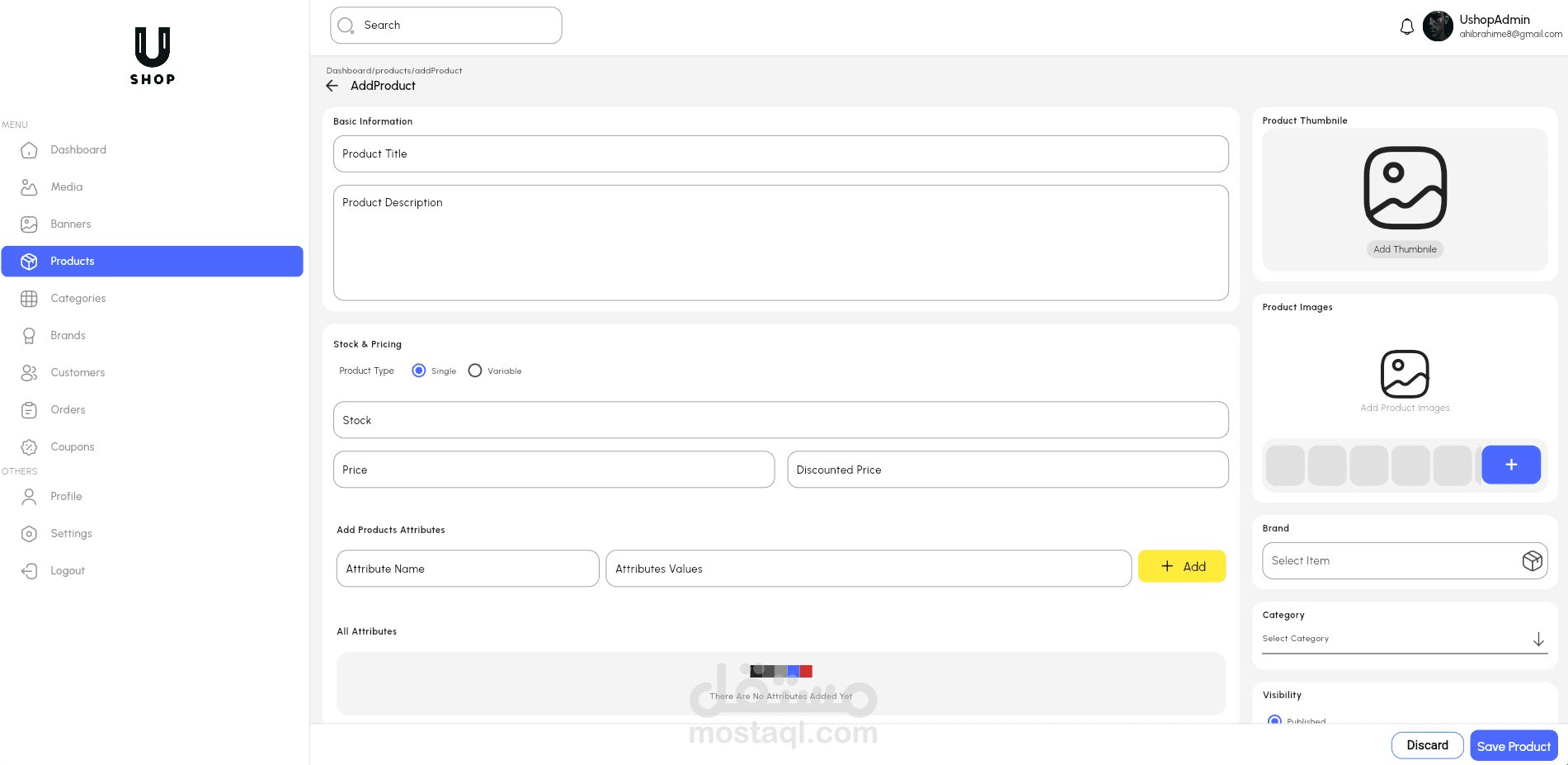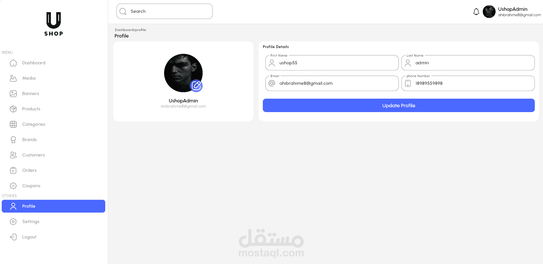 U-SHOP Dashboard هي لوحة تحكم صممت خصيصا للمتجر الالكترونى U-SHOP تتيح لأصحابه متابعة وإدارة منتجاتهم وطلباتهم بسهولة. من خلالها يمكن إضافة المنتجات، متابعة المبيعات، إدارة المخزون، واستعراض التقارير والإحصائيات بشكل منظم يساعد على اتخاذ قرارات أفضل.