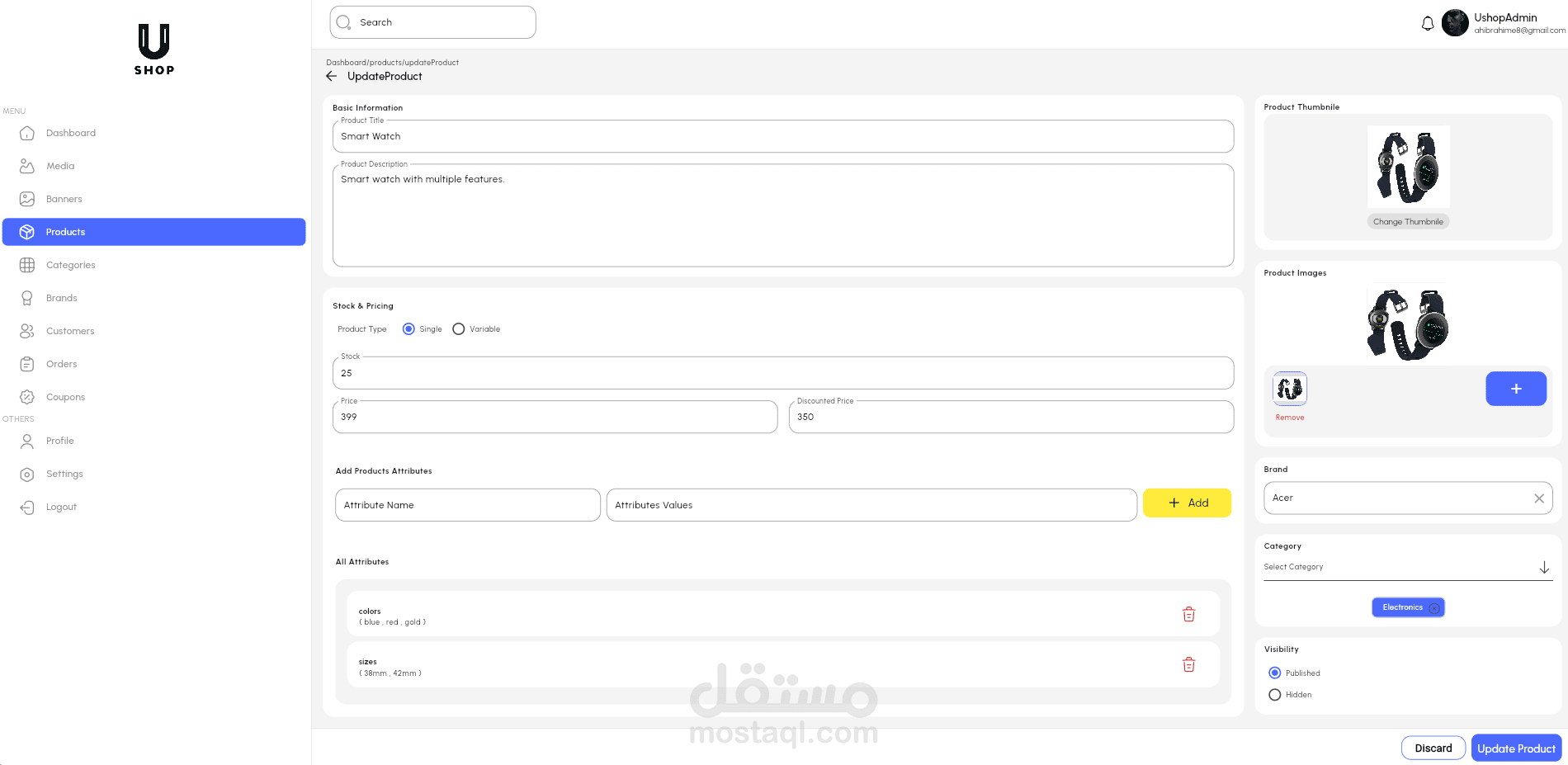 U-SHOP Dashboard هي لوحة تحكم متكاملة صُممت خصيصًا لتمنح أصحاب المتجر U-SHOP والمشرفين تجربة سلسة في إدارة متجرهم.