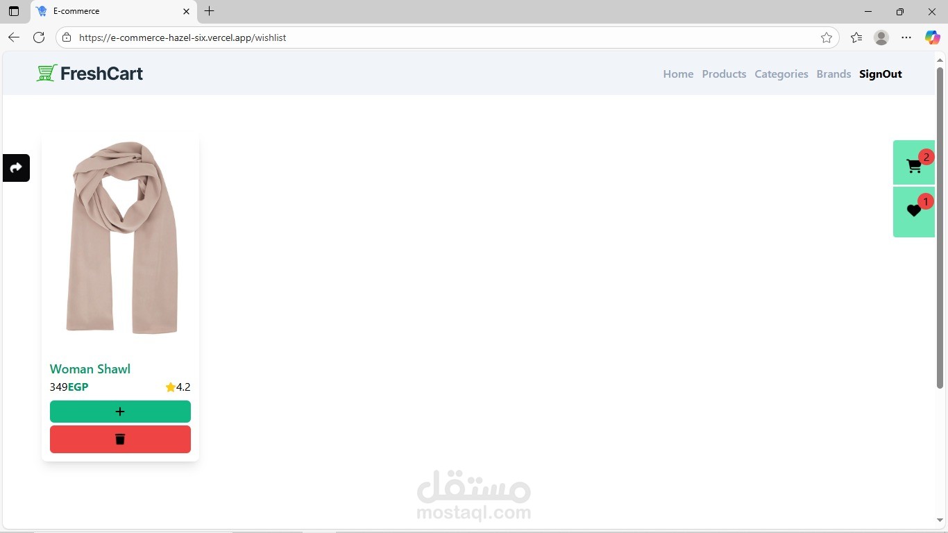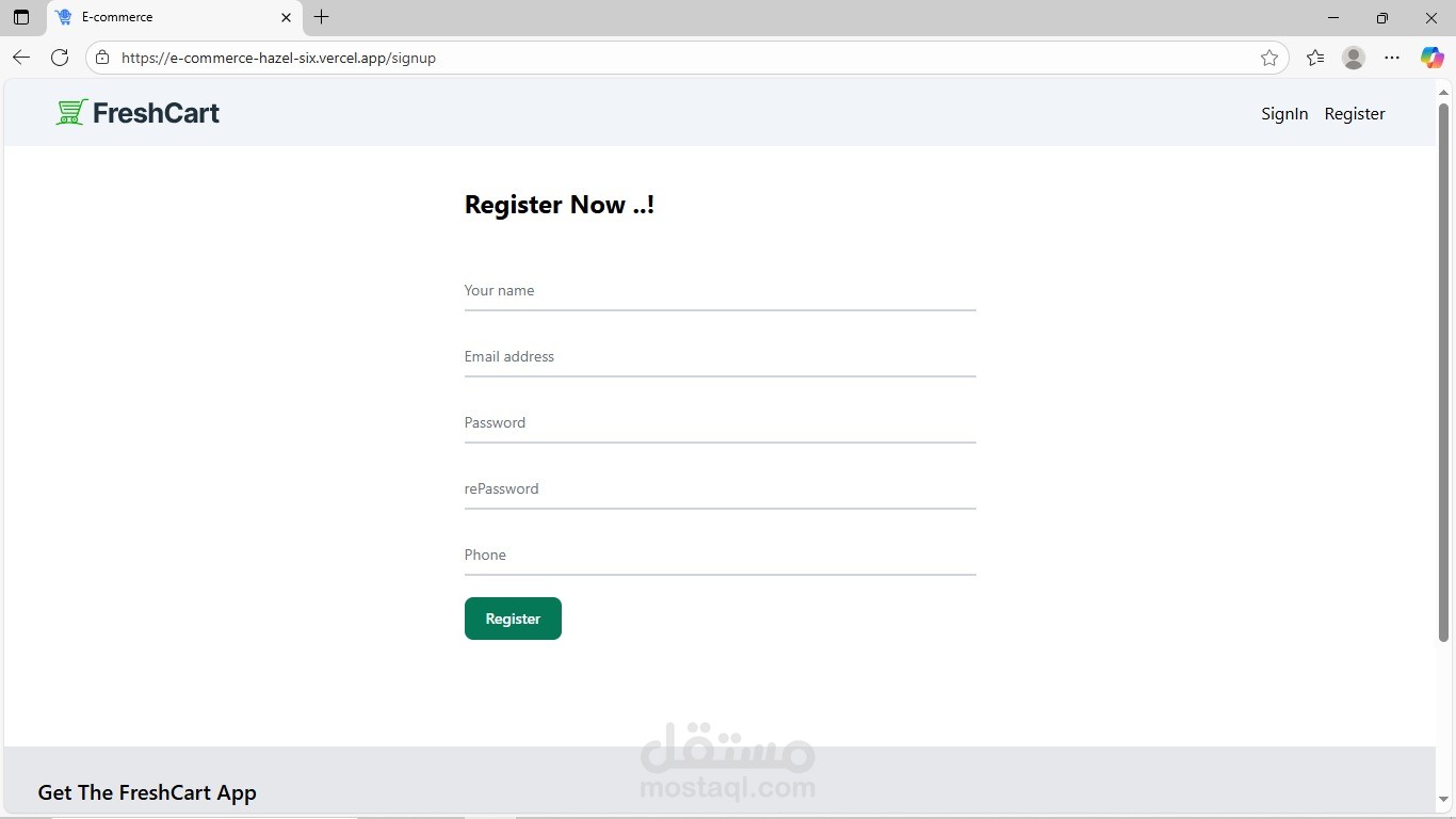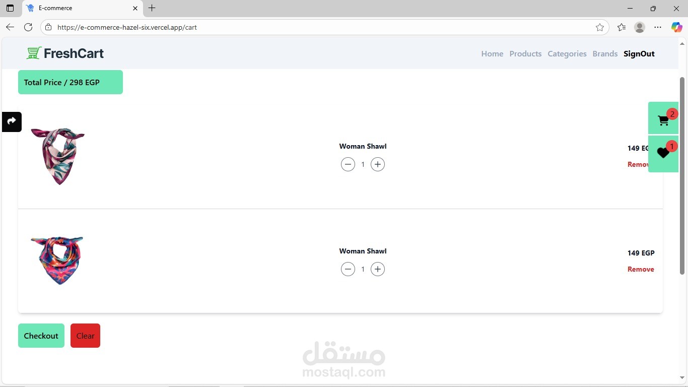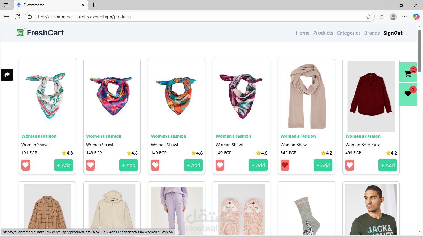 Developed a fully functional E-commerce platform called Fresh Cart that allows users to browse products, add items to a shopping cart, manage favorites, and complete checkout.