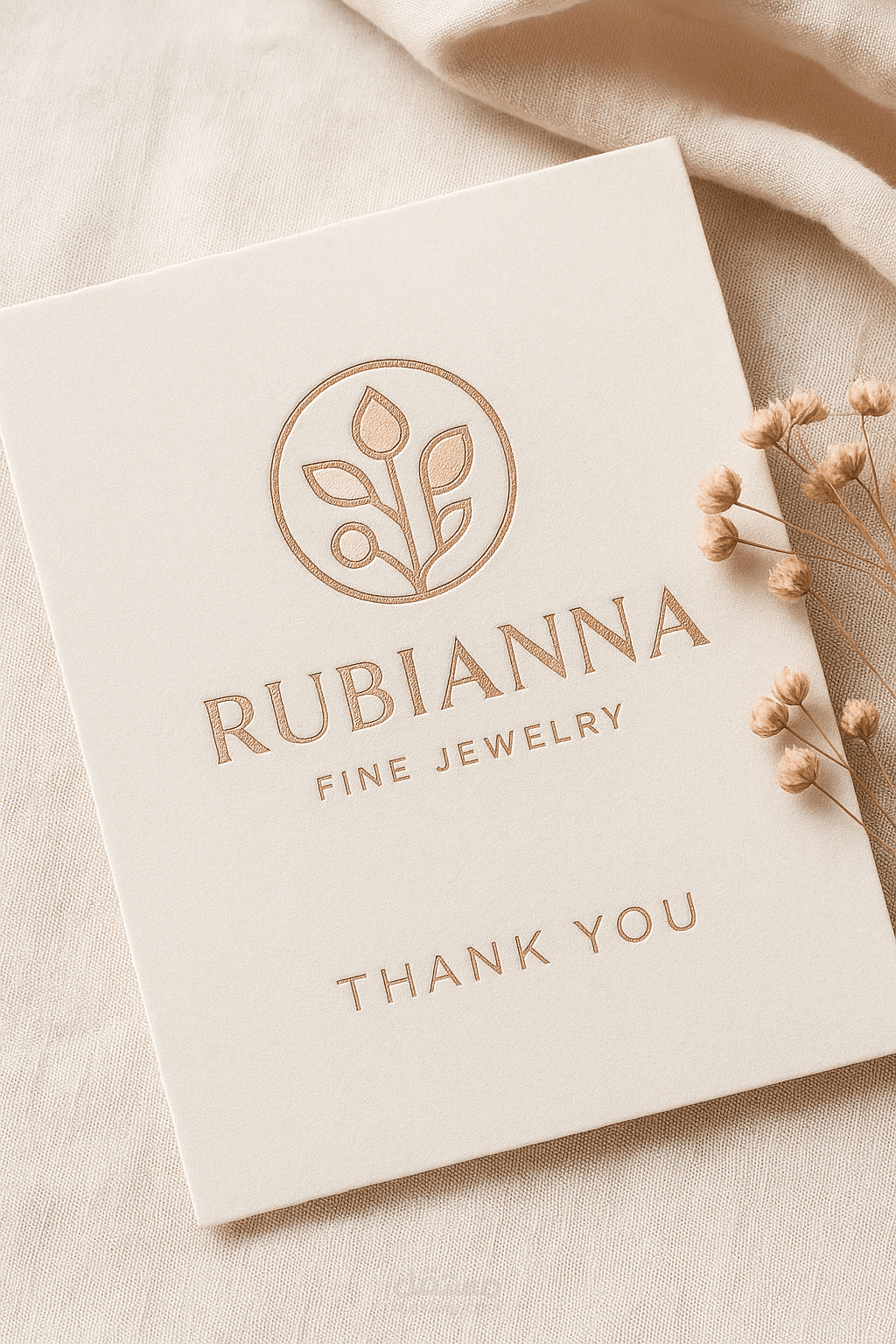 كلمة RUBIANNA مكتوبة بخط كلاسيكي أنيق بحروف بارزة تمنح إحساساً بالقوة والثقة.