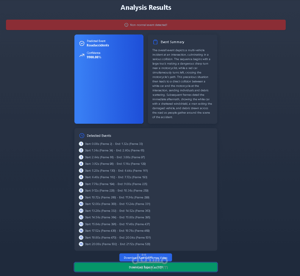 طورت نظامًا يعتمد على تقنيات الرؤية الحاسوبية (Computer Vision) و نماذج اللغة (LLMs) لتحويل ساعات طويلة من فيديوهات المراقبة إلى ملخصات ذكية مفهومة.