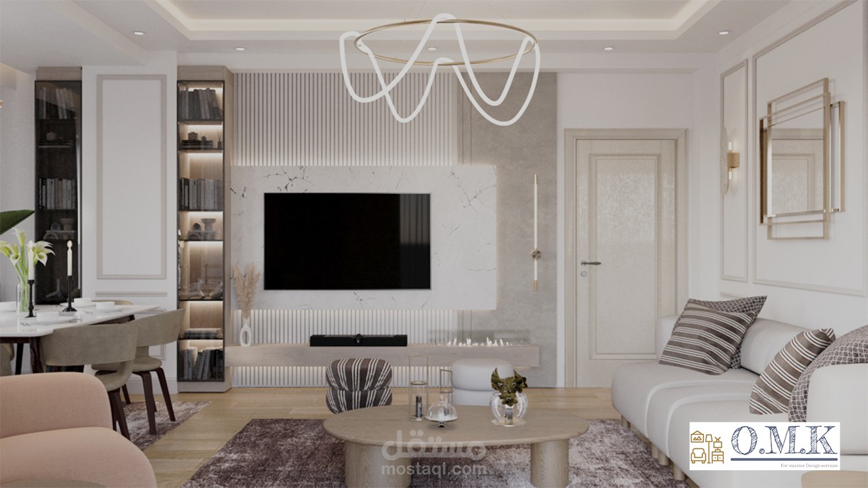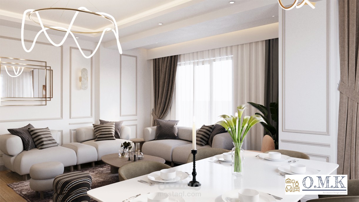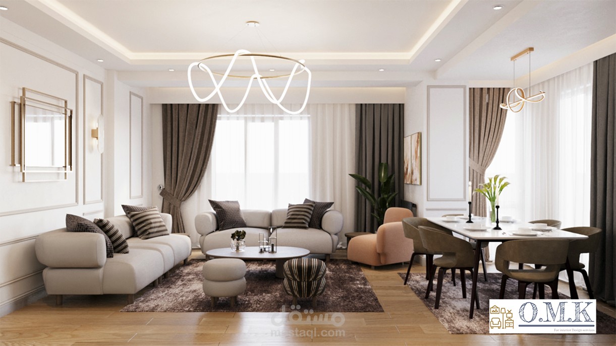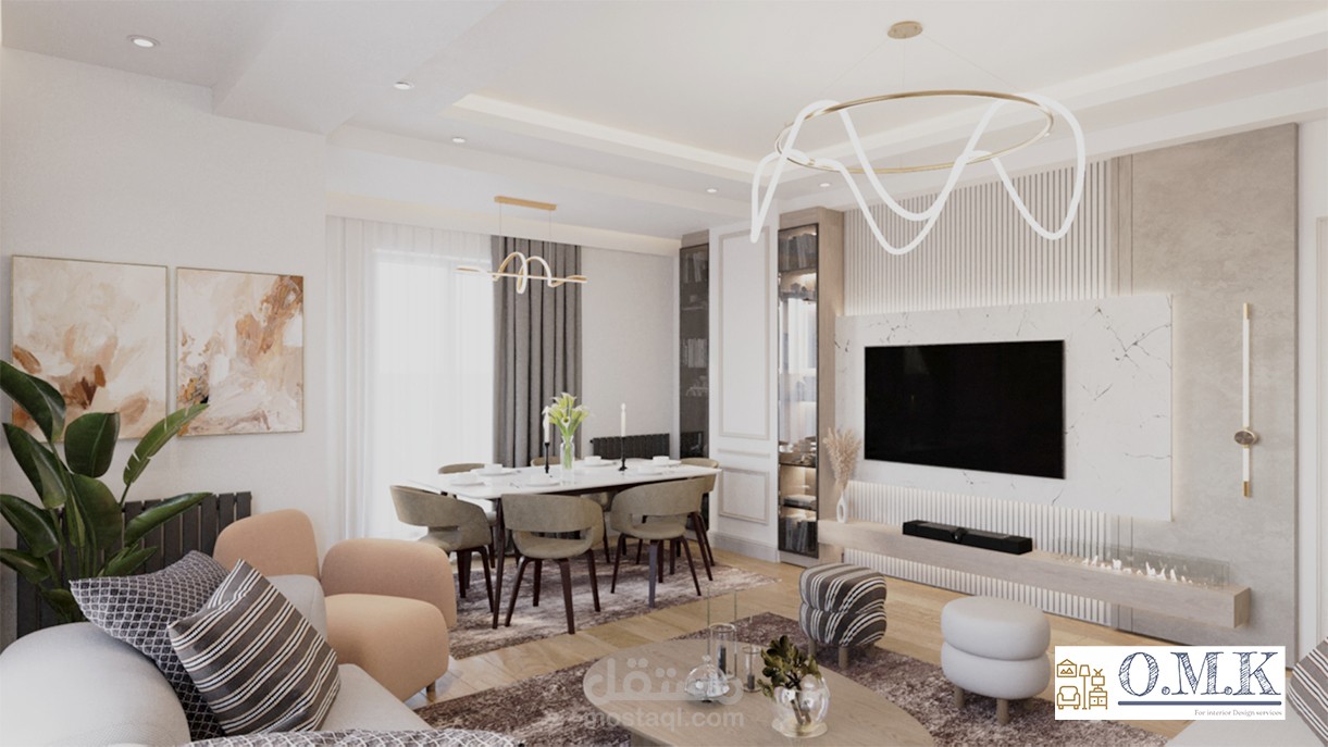 العمل: تصميم داخلي – غرفة جلوس مع ركن لتناول الطعام