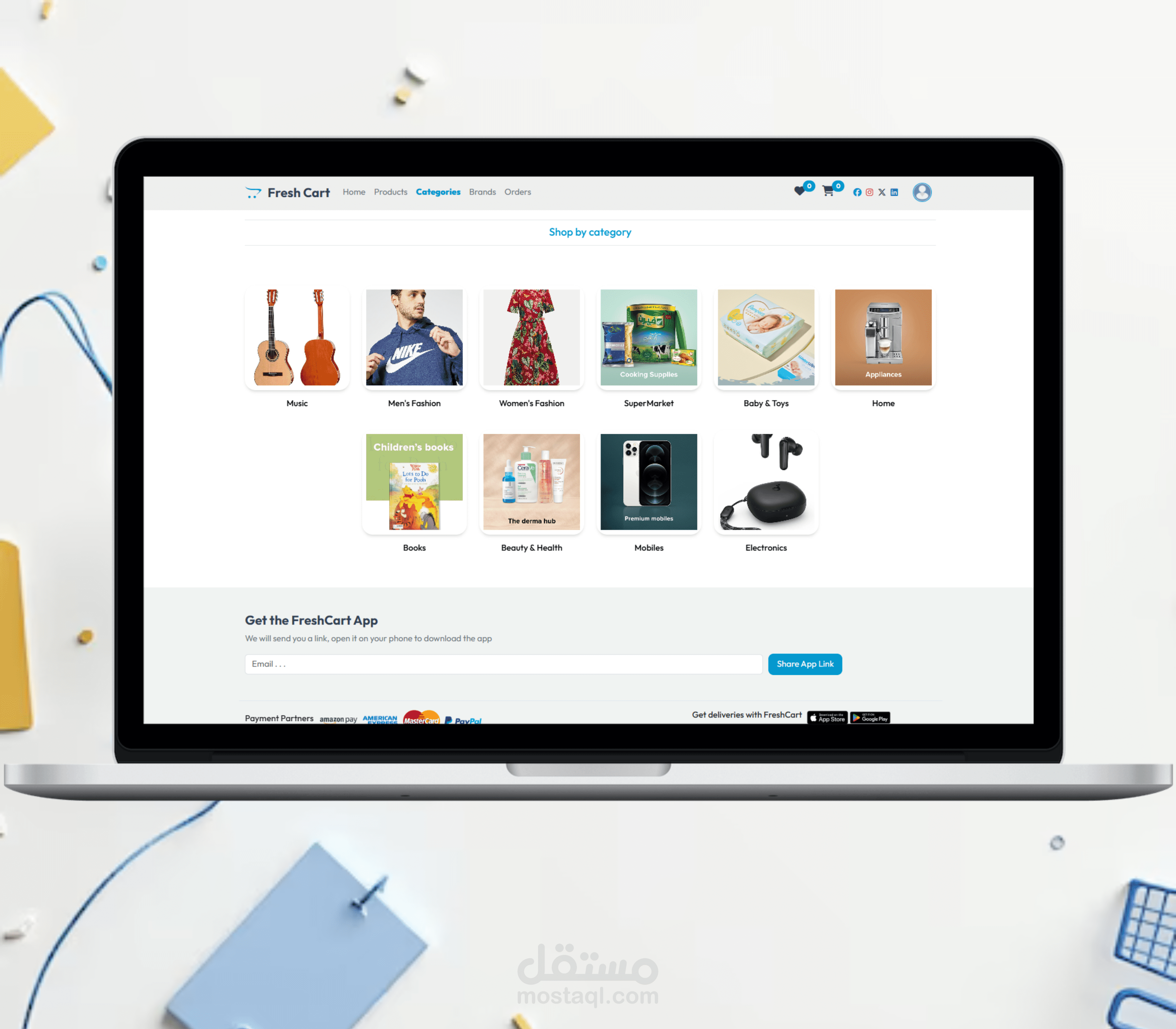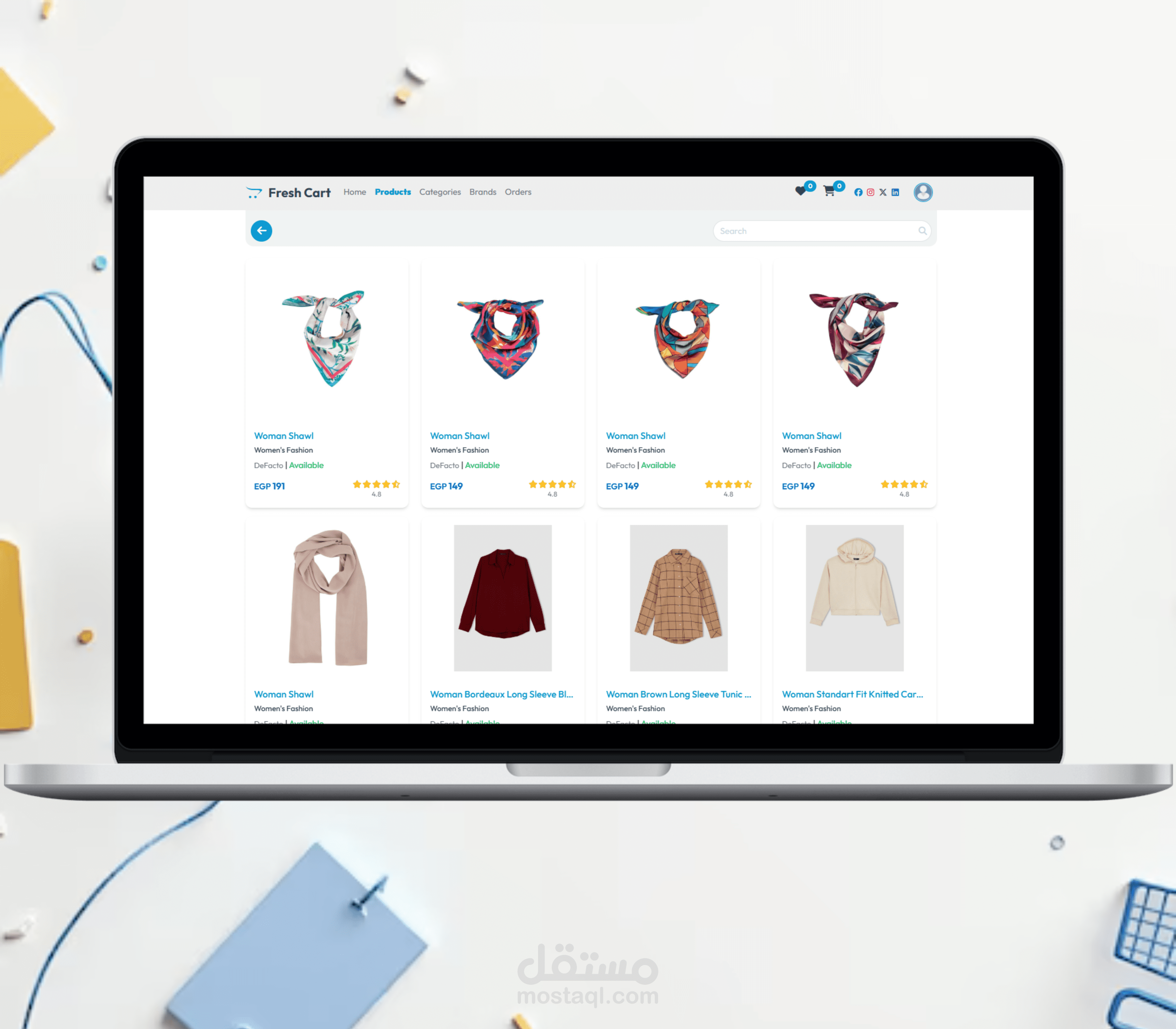 منصة تجارة إلكترونية متكاملة مبنية باستخدام Angular، تشمل تسجيل ودخول المستخدمين، التحقق عبر البريد الإلكتروني، عربة التسوق، قائمة الأمنيات، تصفية المنتجات، وإدارة جلسات آمنة باستخدام JWT. صُممت بواجهة متجاوبة وواجهة استخدام سلسة مع مؤثرات حركية.