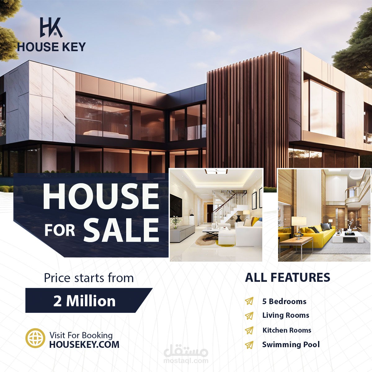 صممت لوجو لبراند باسم house key واعتمدت في فكرته علي تبسيط الاسم وتحويله لرمز بصري سهل الحفظ واخذت الحرف الاول من كل كلمة ودمجتهم في شكل متناسق يعبر عن هوية البراند