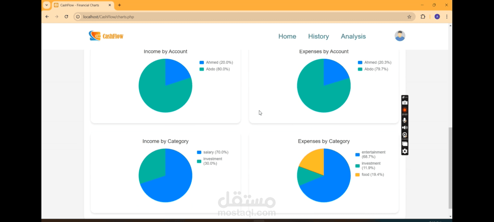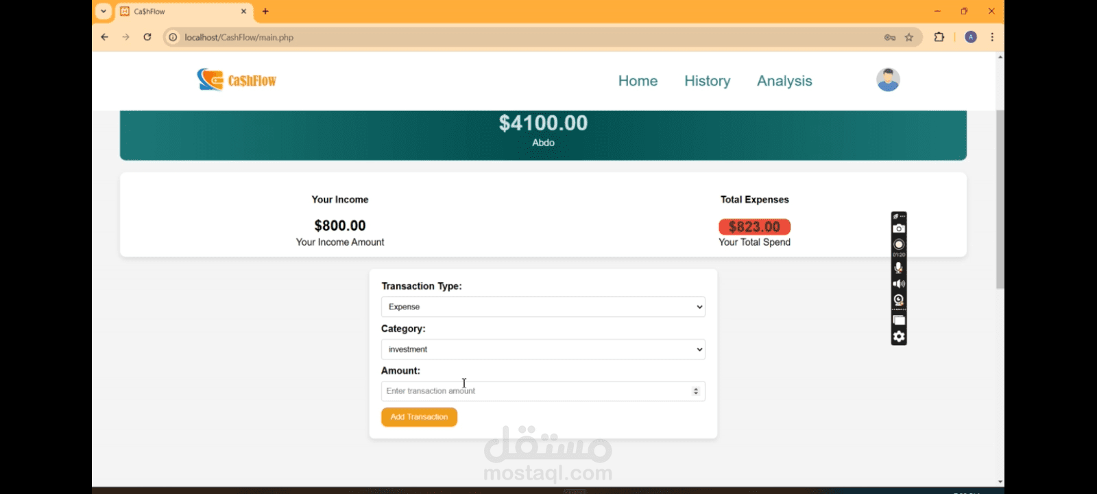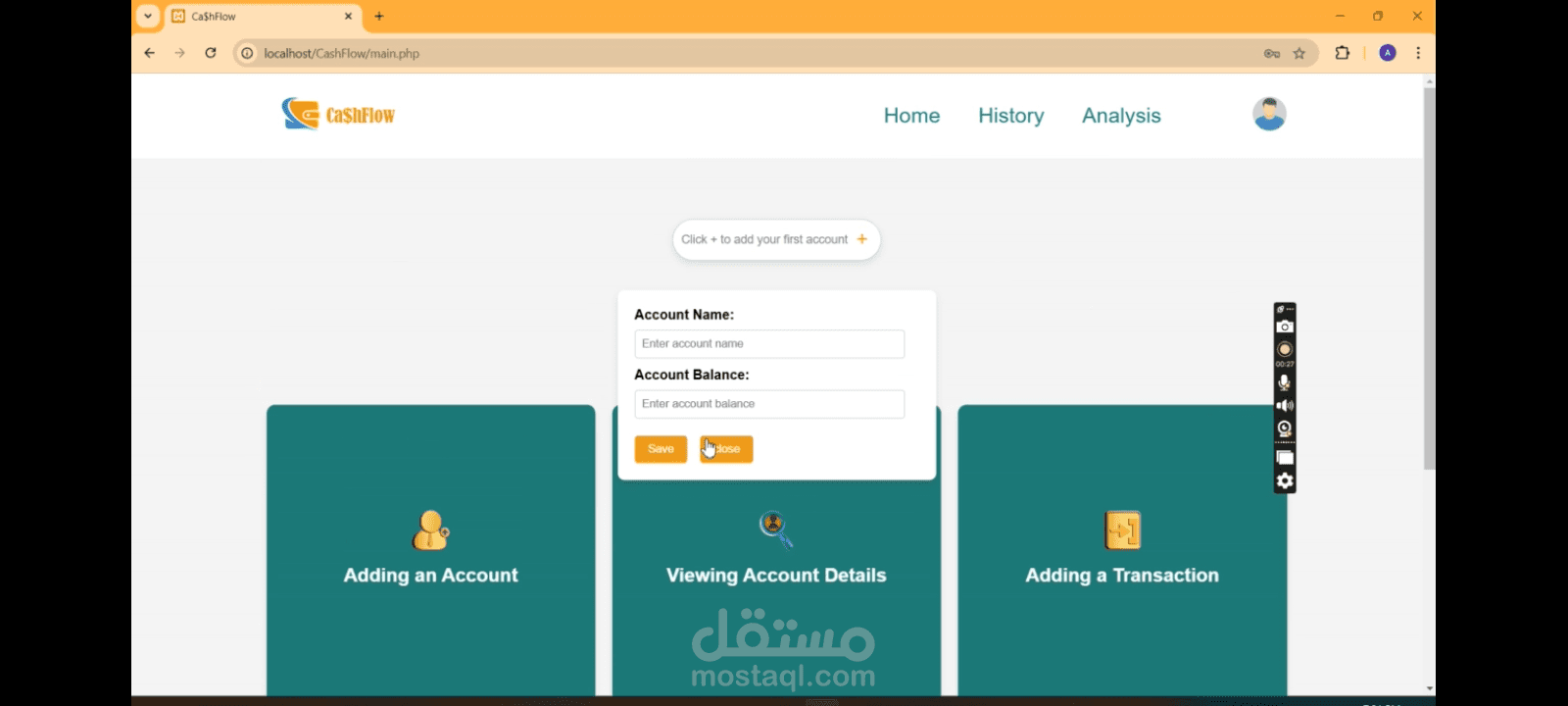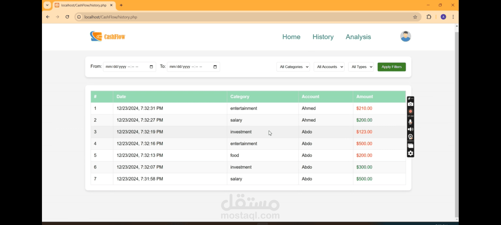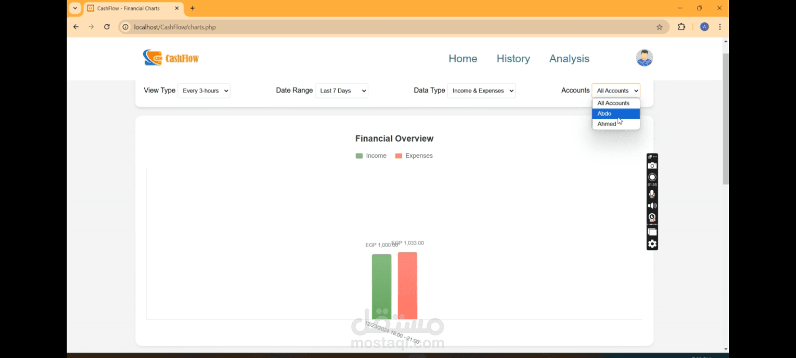 Cash Flow هو تطبيق ويب خفيف وبسيط لإدارة وتتبع الفلوس، سواء للاستعمال الشخصي أو للمشروعات الصغيرة. فكر فيه كدفتر ملاحظات رقمي بيتسجل فيه كل عمليات السحب والإيداع. التطبيق بيسمحلك تدير أكتر من حساب في نفس الوقت (زي كاش، بنك، محفظة موبايل) وتشوف تاريخ كامل للمعاملات بأي وقت.