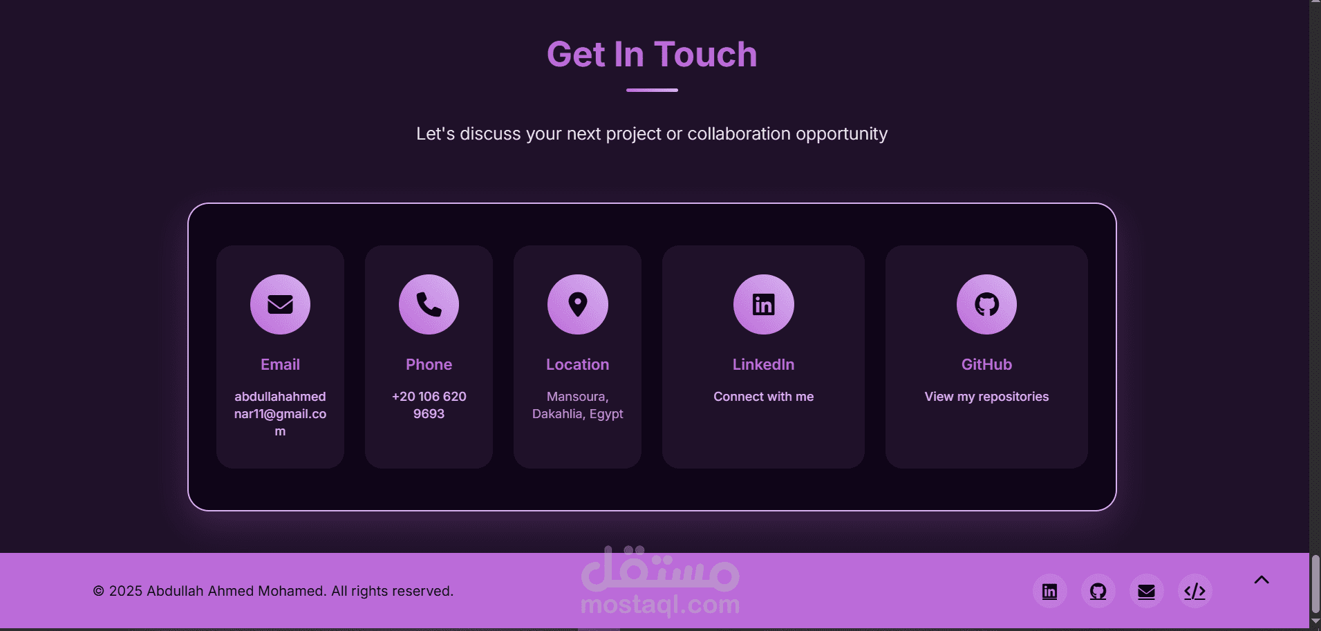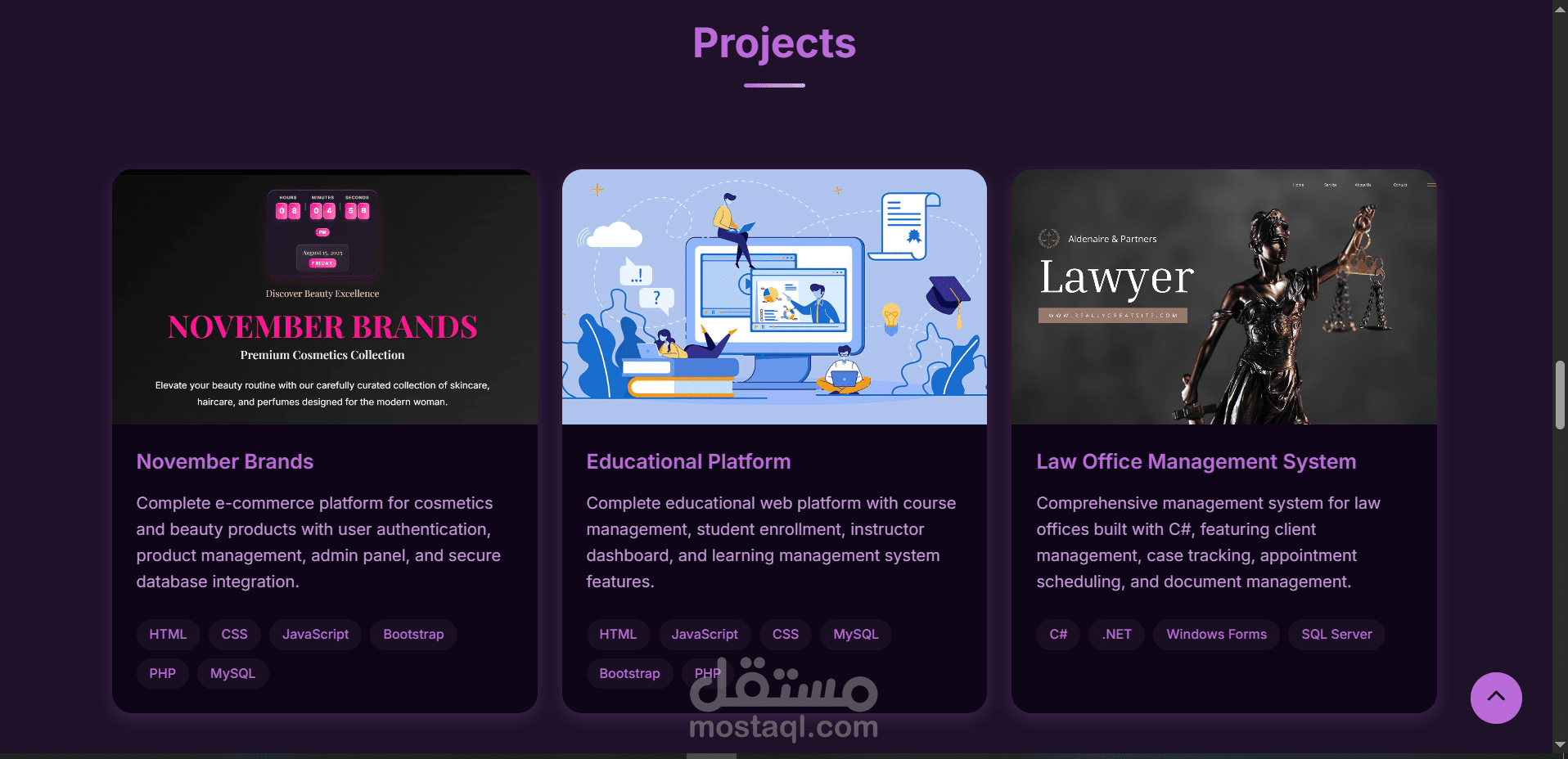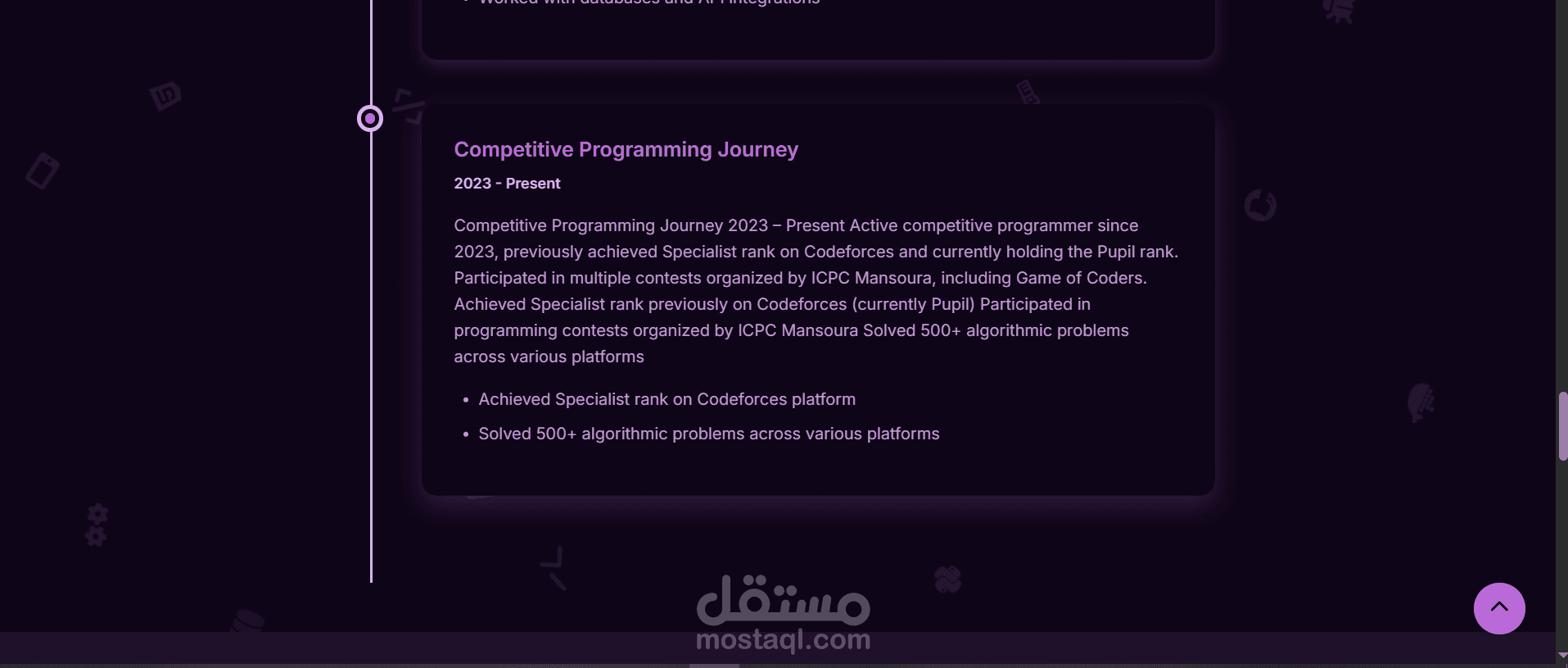 بورتفوليو شخصي يضم مشاريعي في مجال علوم الحاسب وتطوير البرمجيات، بالإضافة إلى إنجازاتي الأكاديمية وبعض الشهادات التي حصلت عليها، ليعكس رحلتي في التعلم وتطوير مهاراتي.