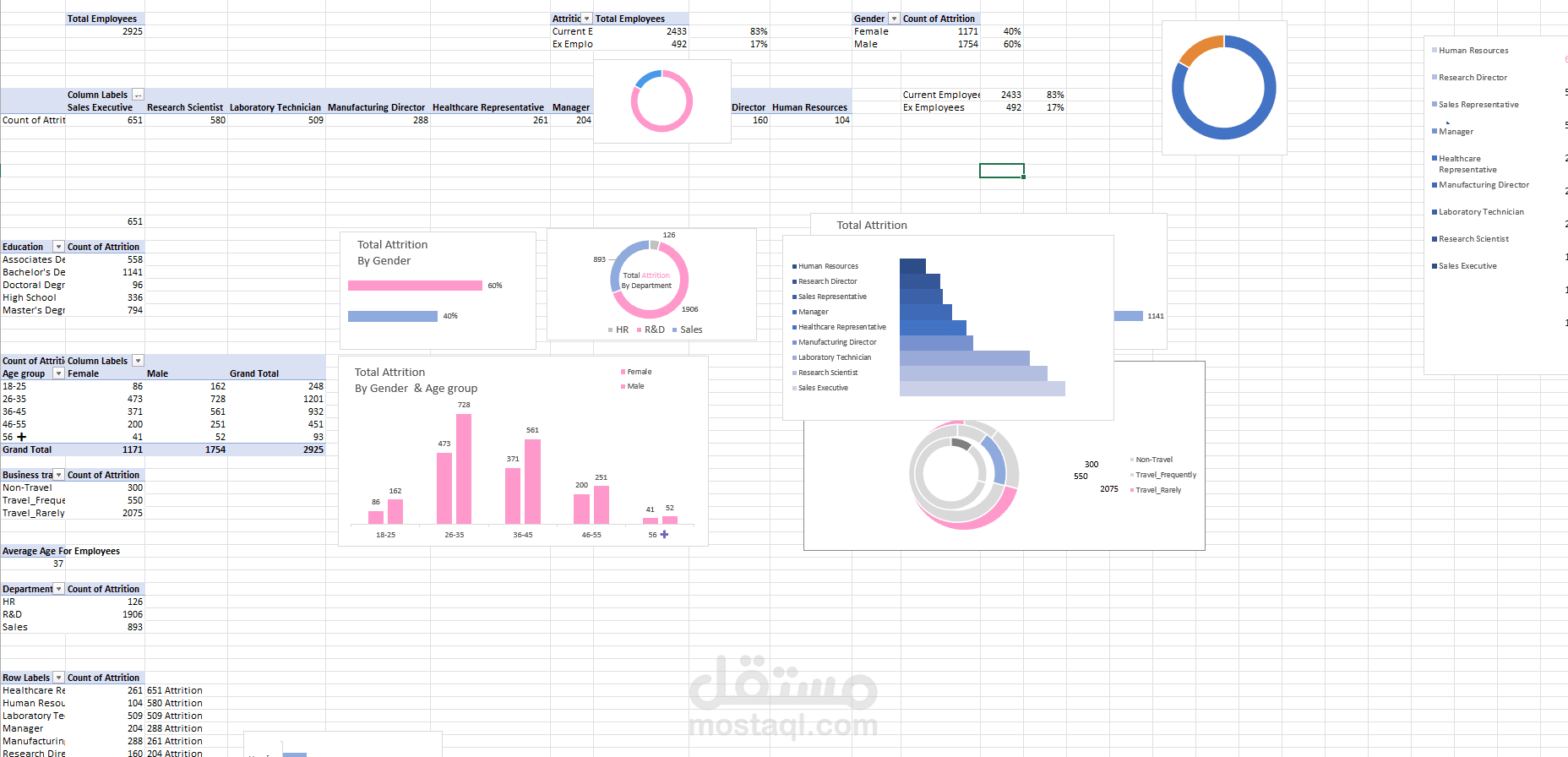 تم باستخدام pivot table و بعض المعادلات ثم dashboard لعرض النتائج