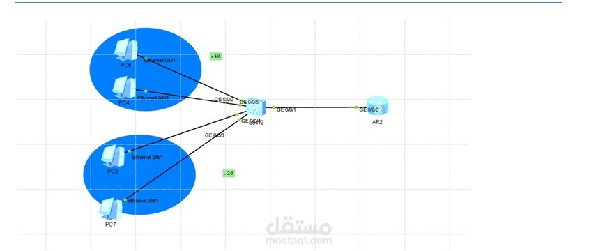 192.168.20.1 Gateway لشبكة VLAN 20.