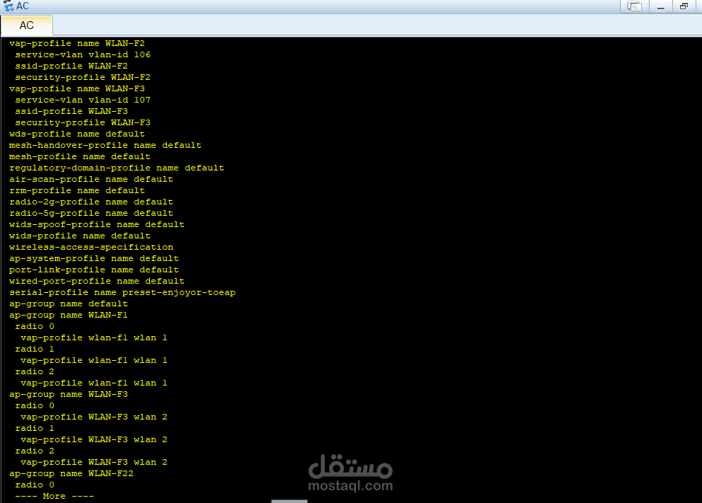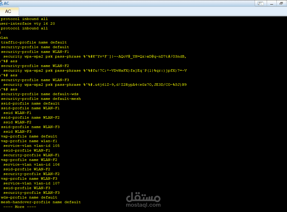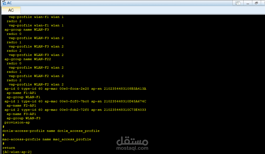 كما يظهر وجود جهاز التحكم في الشبكة (AC) الذي يدير الاتصال اللاسلكي ويضمن استقرار وأمان نقاط الوصول.