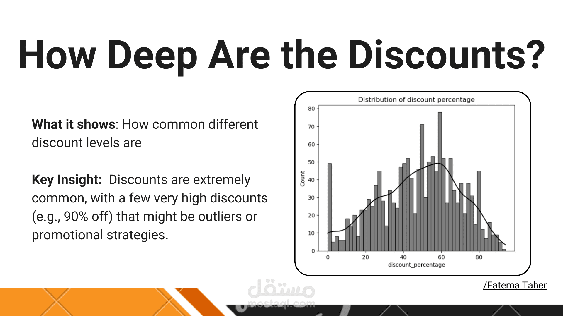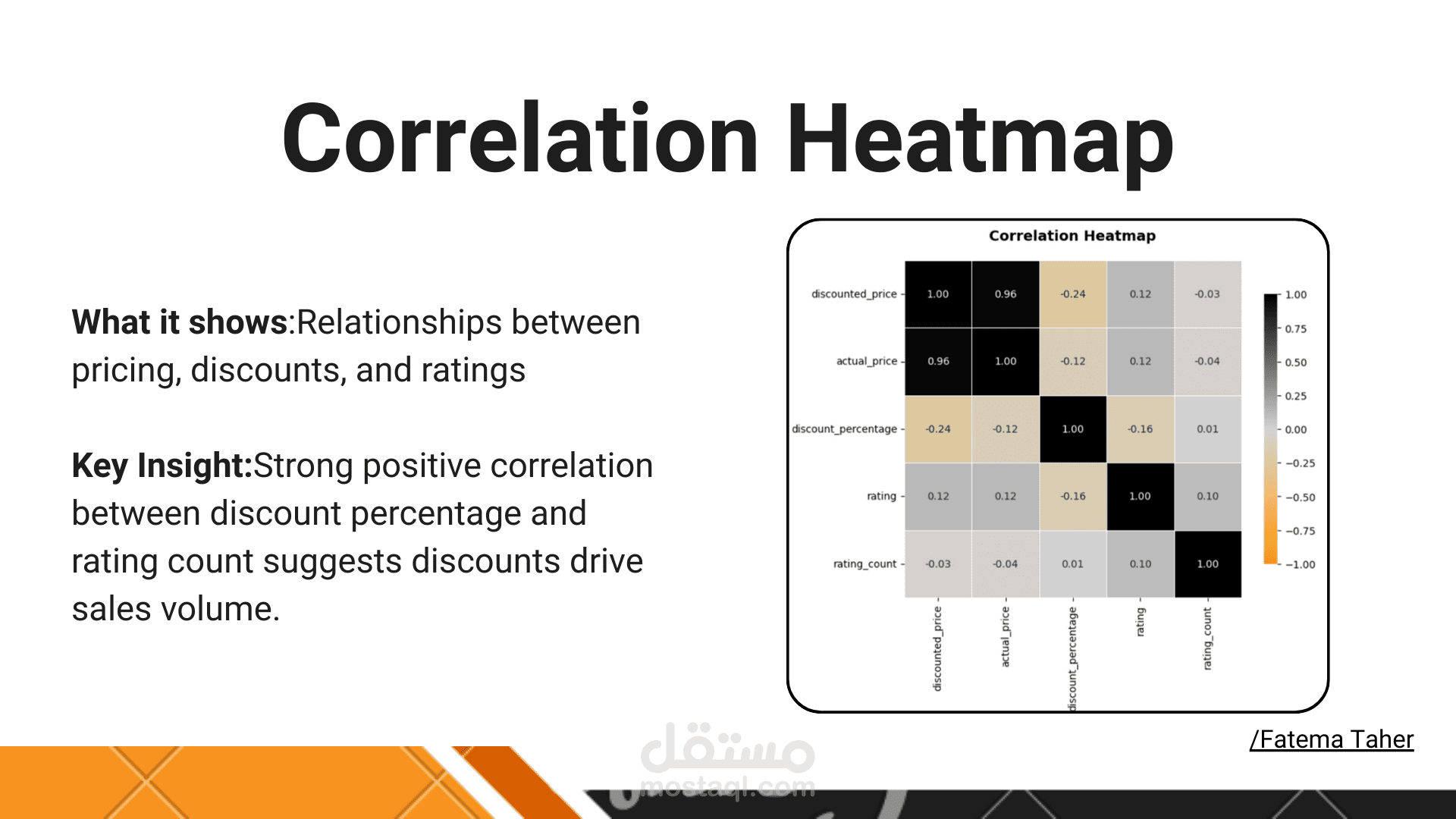 العلاقات بين المتغيرات (مثل الخصم وعدد التقييمات) باستخدام خرائط الحرارة (Heatmaps).