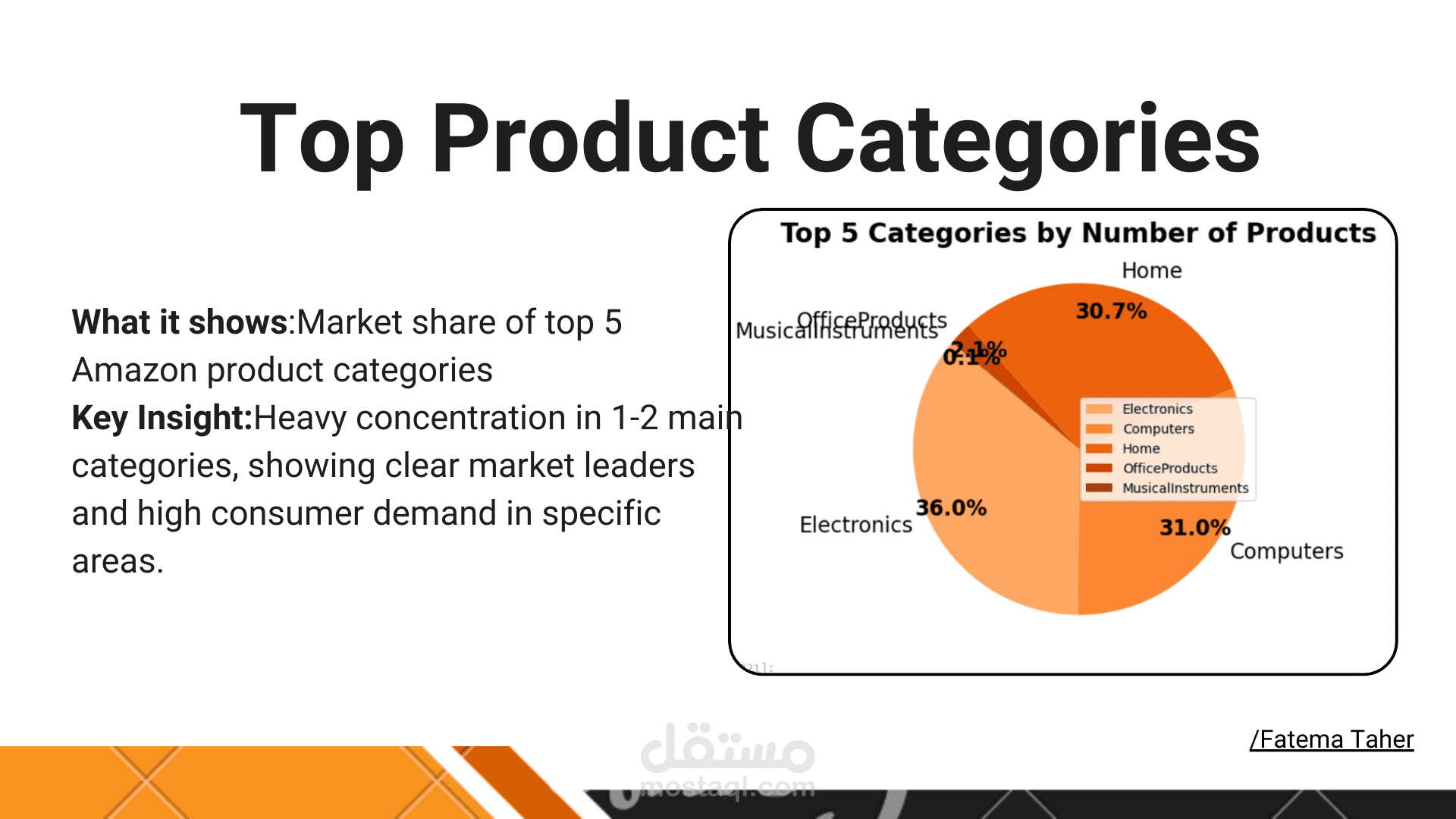 في هذا المشروع، قمت بتحليل مجموعة بيانات لمنتجات Amazon لاستخراج اتجاهات السوق الرئيسية وتقديم رؤى قيمة، وإليك ملخص للخدمات التي قمت بها والتي يمكنني تقديمها لك:
