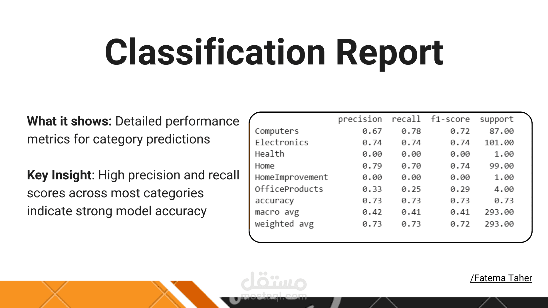 بناء وتدريب نموذج Random Forest Classifier للتنبؤ بفئة المنتج بناءً على سعره، تقييمه، وخصمه.