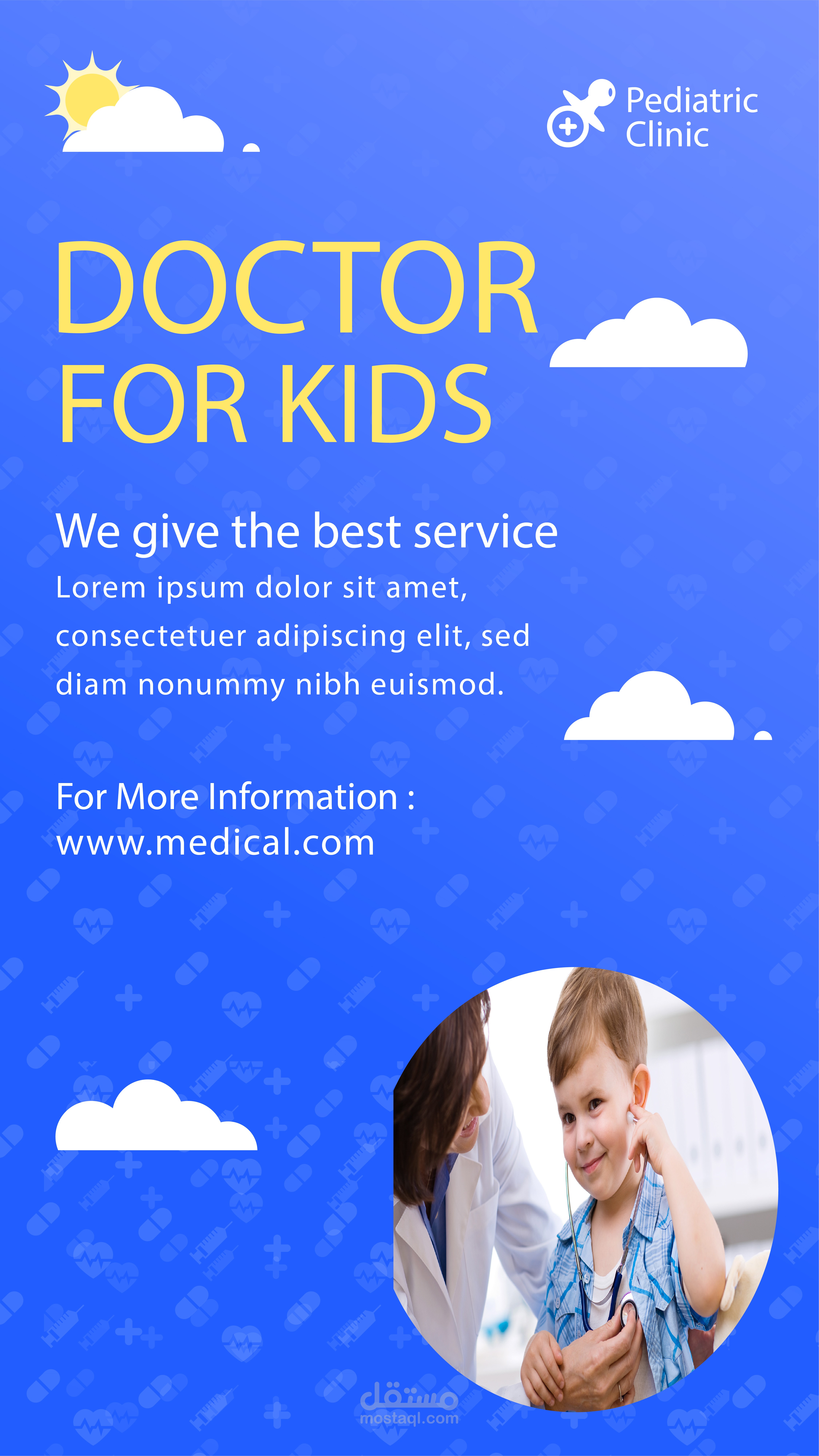 تم تنفيذ مجموعة من منشورات وسائل التواصل الاجتماعي لعيادة الأطفال باستخدام Adobe Photoshop، بهدف إبراز روح الطفولة بشكل مرح وجذاب، وتعزيز الهوية البصرية للعلامة التجارية باحترافية.