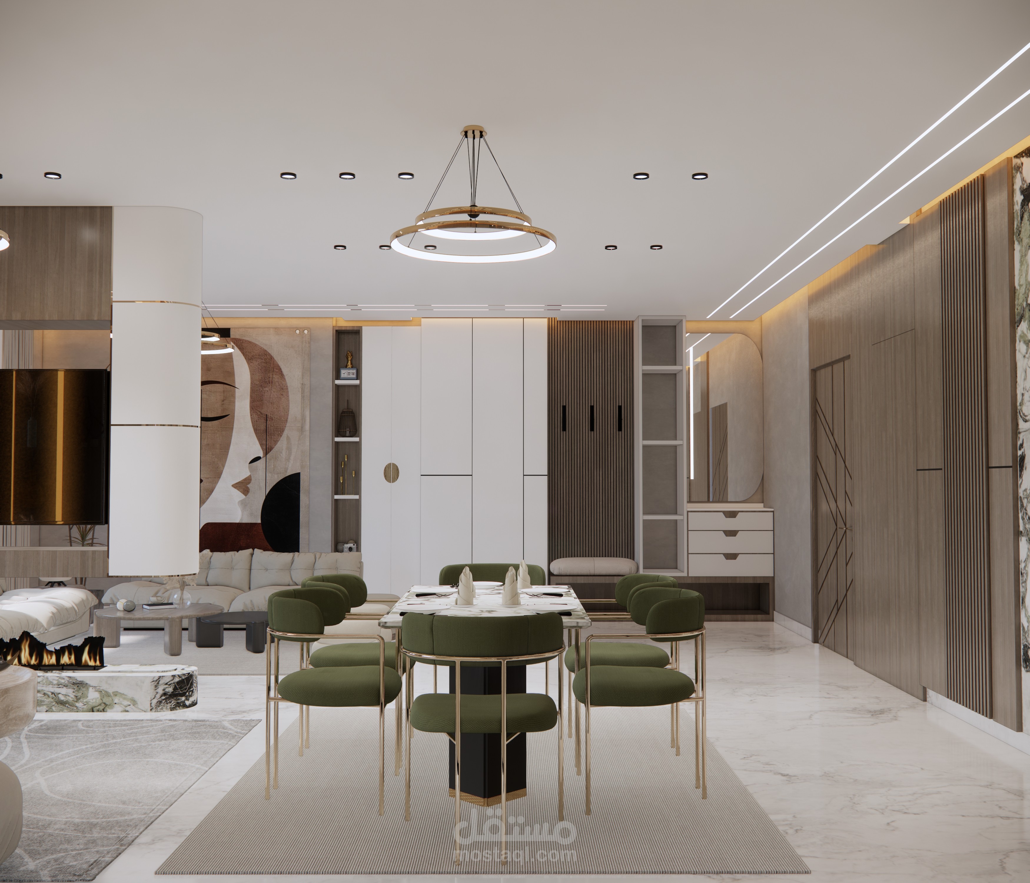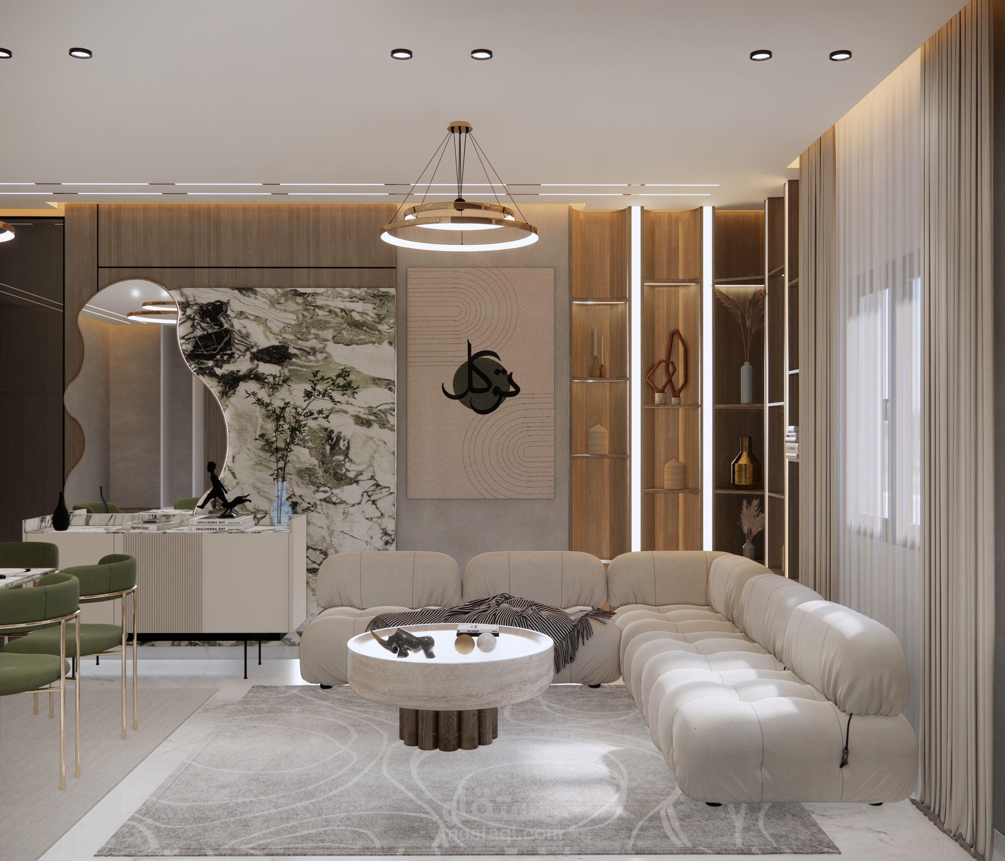 A serene blend of clean lines and rich finishes — this Luxury Minimalist interior balances openness with opulence. Soft neutrals, statement marble, and warm metallic accents create a refined atmosphere, while layered lighting and plush textures add depth and comfort. Modern simplicity, elevated to timeless elegance.