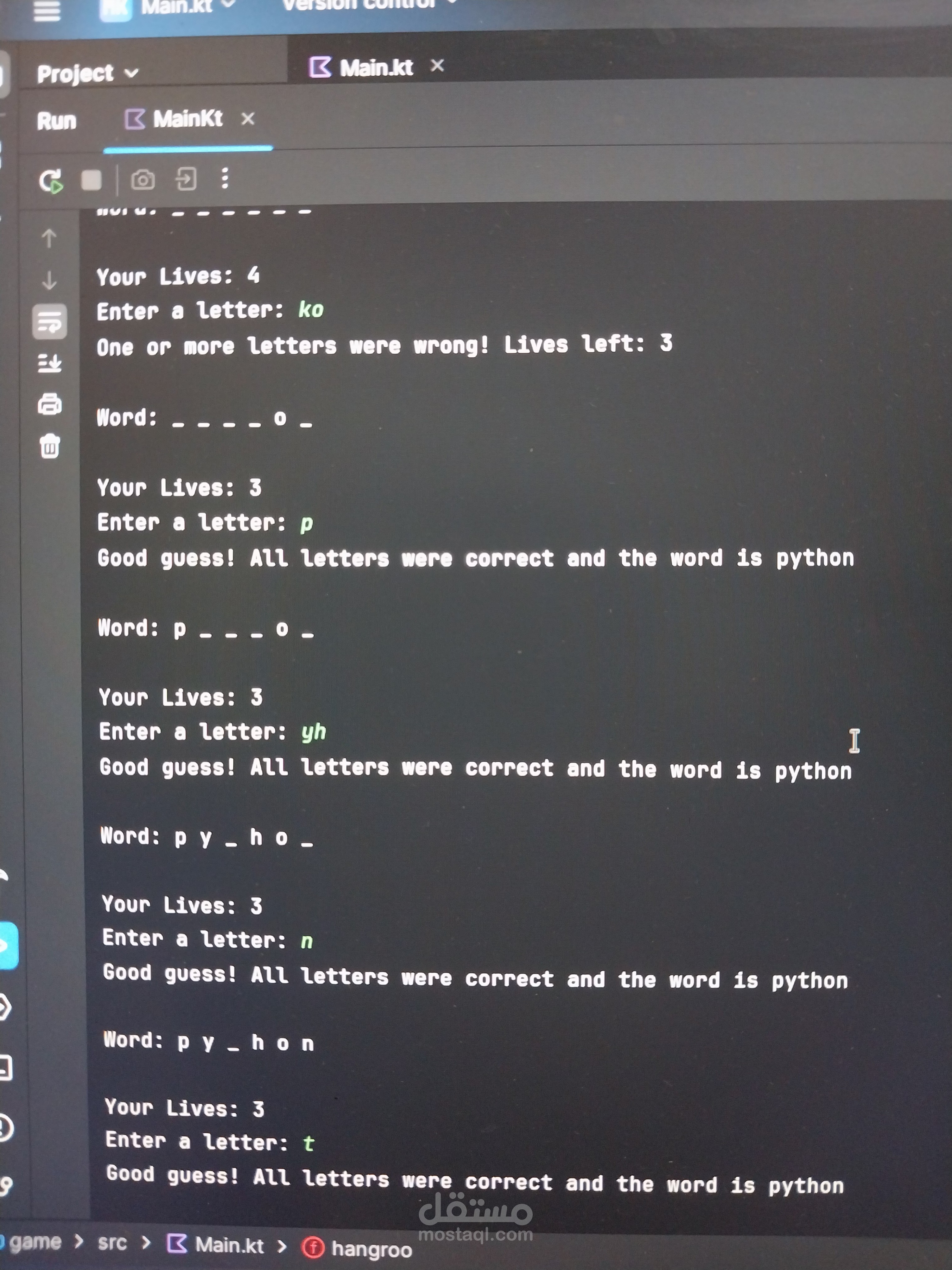 لعبة تعليمية/ترفيهية بسيطة من نوع Hangman قمت بتطويرها باستخدام لغة Kotlin.