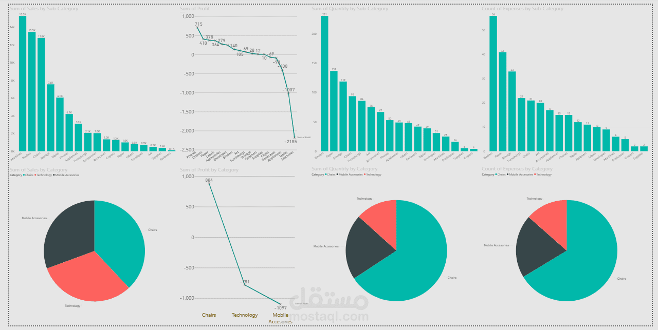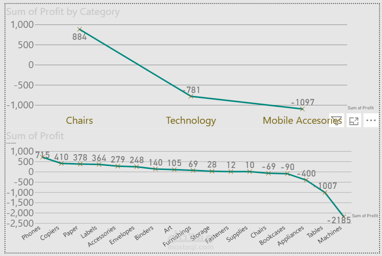 تحليل حسب المنتجات لتحديد أكتر المنتجات مبيعًا وأضعفها أداءً.