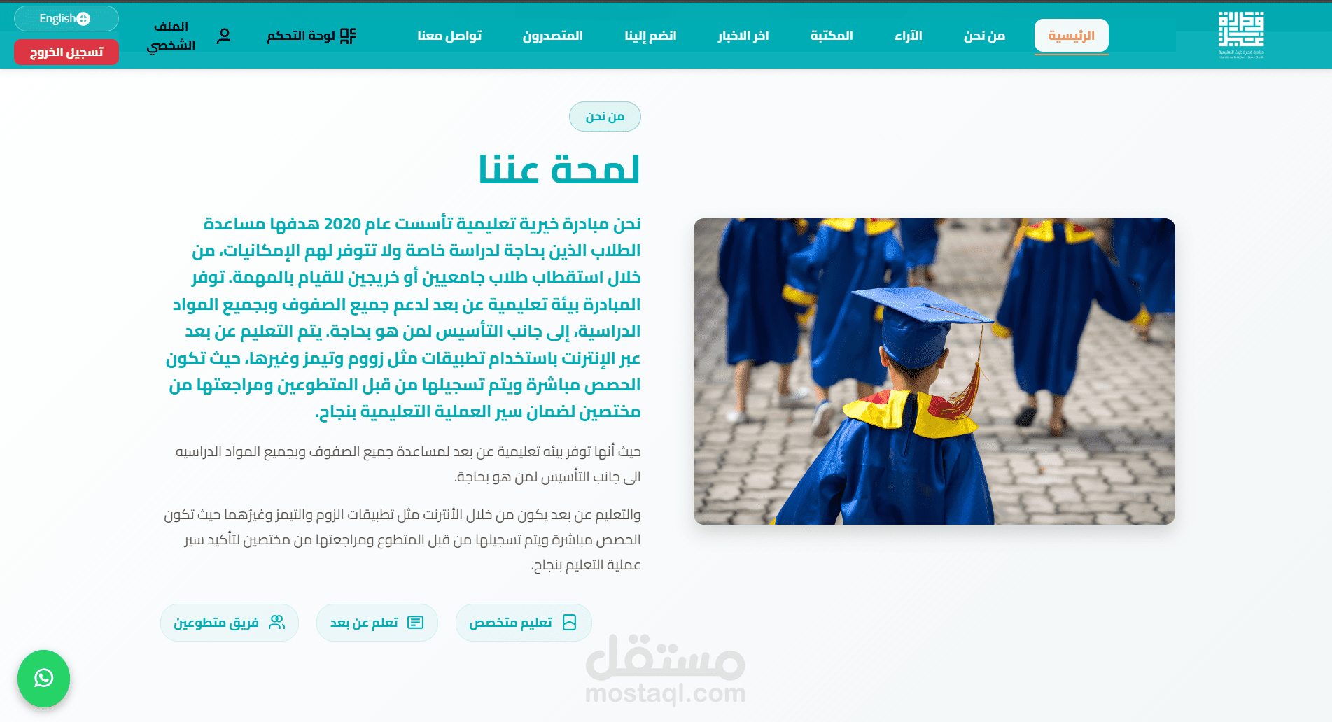 الموقع يدعم لغتين (العربية والإنجليزية) ويتميز بتصميم متجاوب (Responsive) يعمل بكفاءة على جميع الأجهزة (كمبيوتر – تابلت – موبايل).