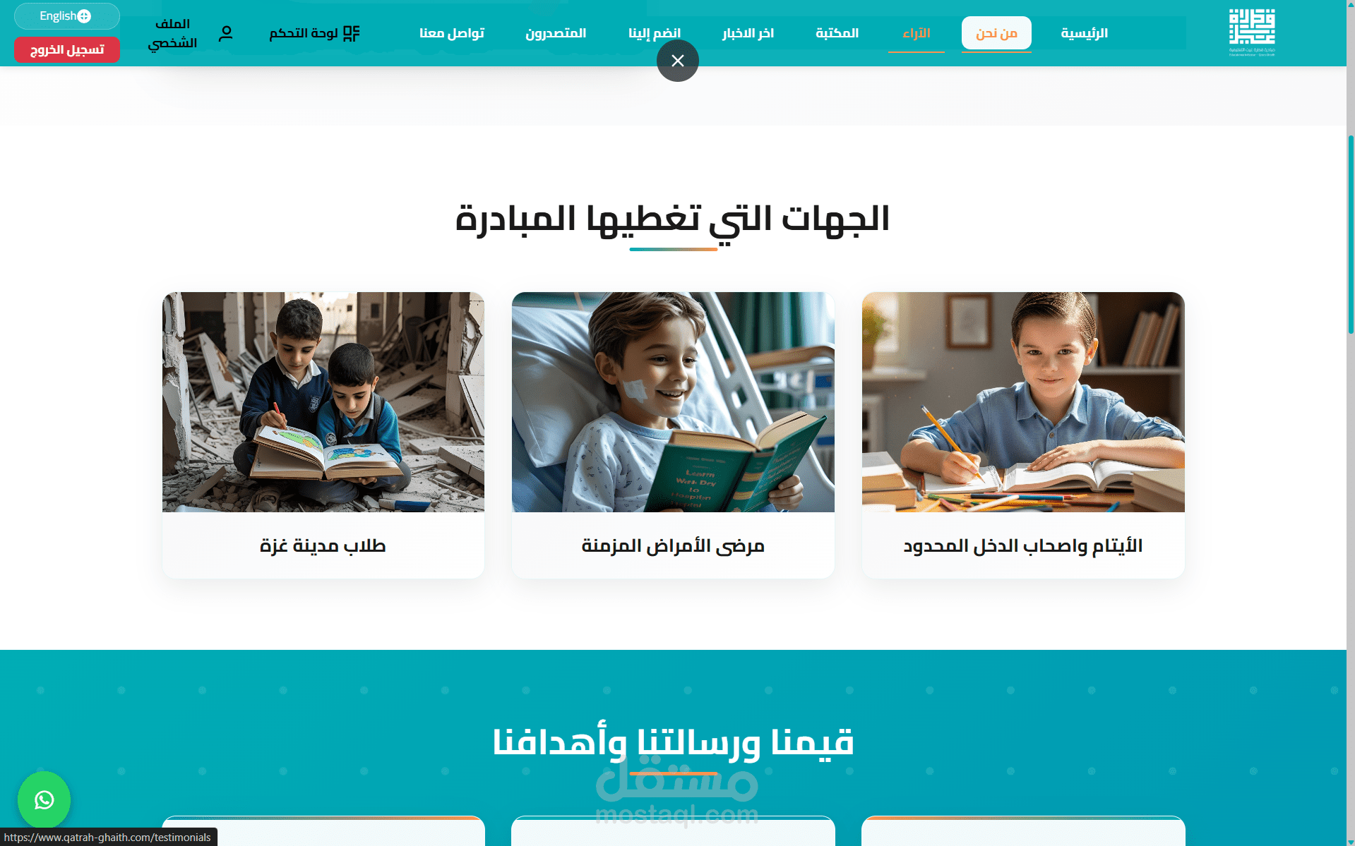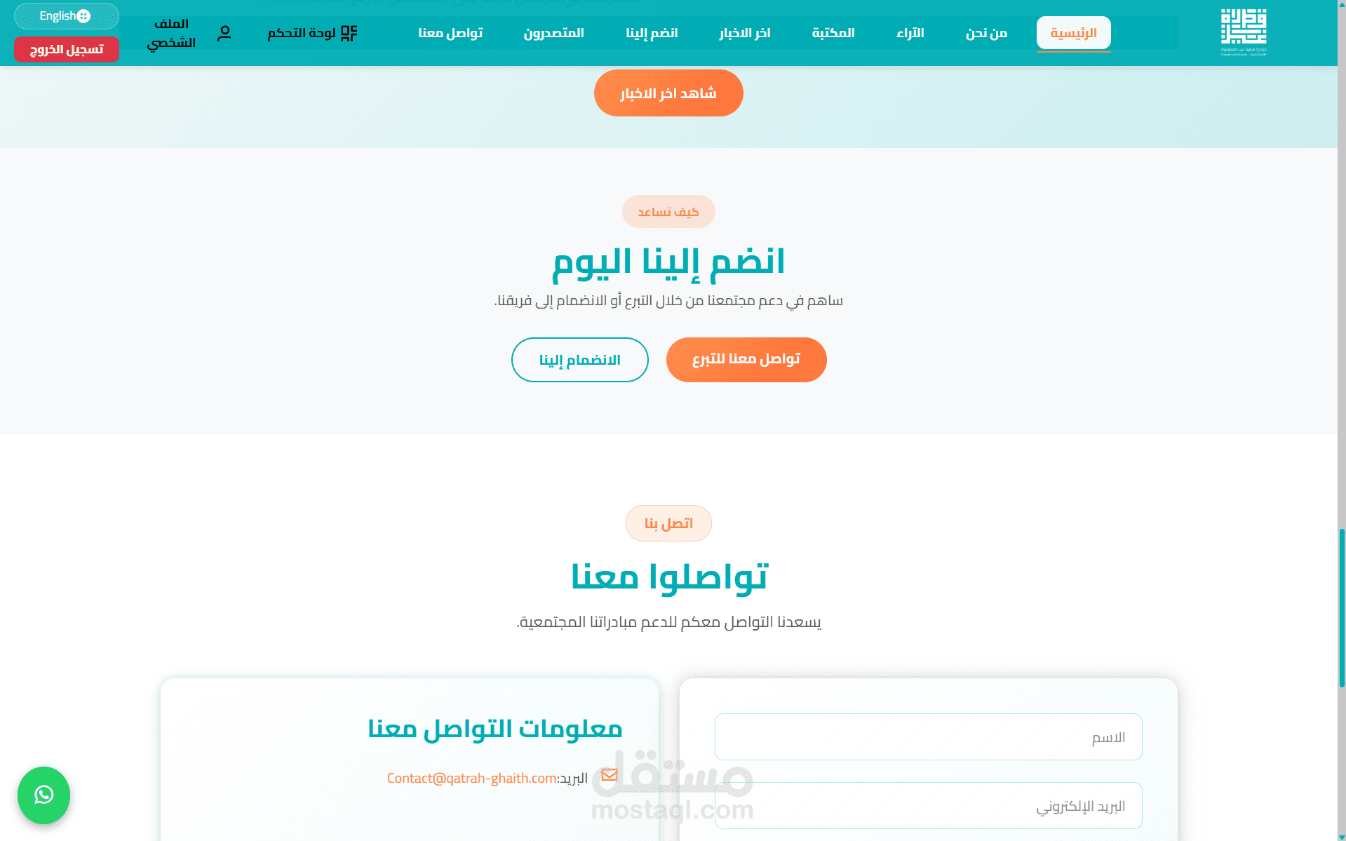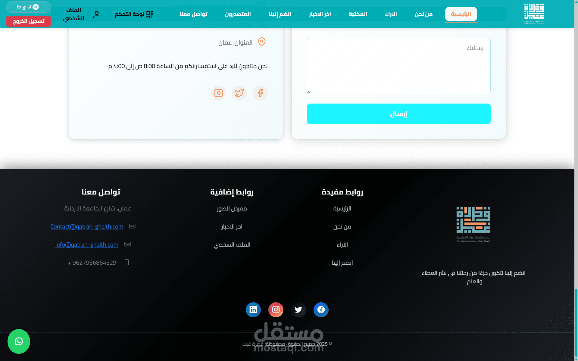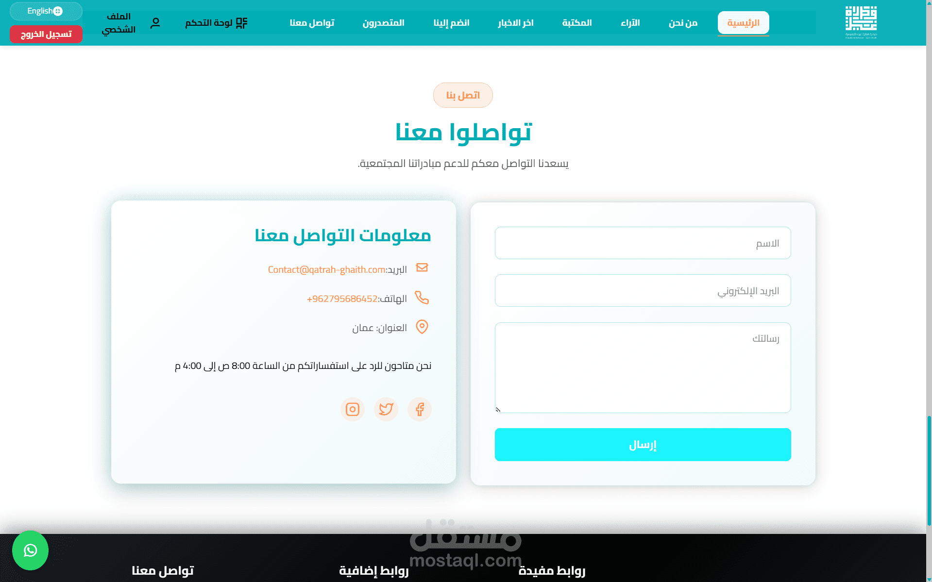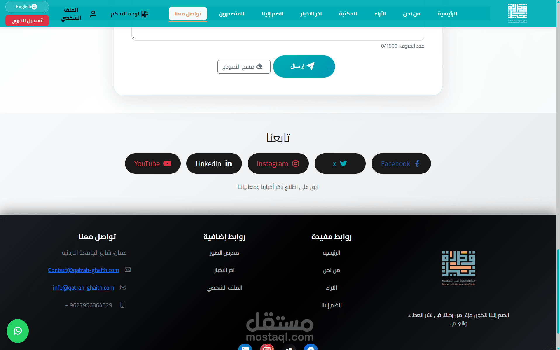 موقع متكامل لمؤسسة قطرة غيث الخيرية يشمل واجهة مستخدم (Frontend) حديثة ولوحة تحكم (Dashboard) مرنة وسهلة الاستخدام.