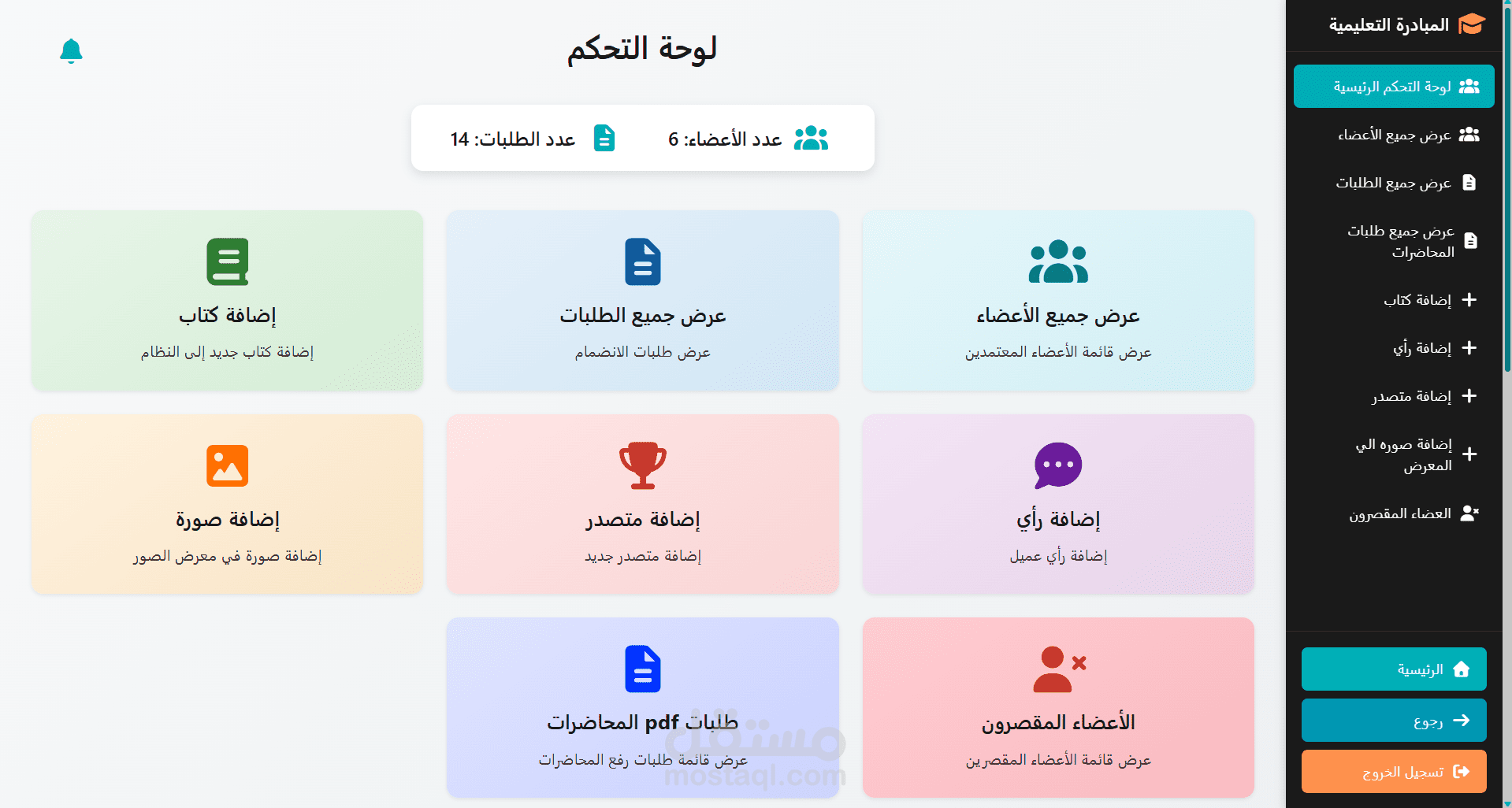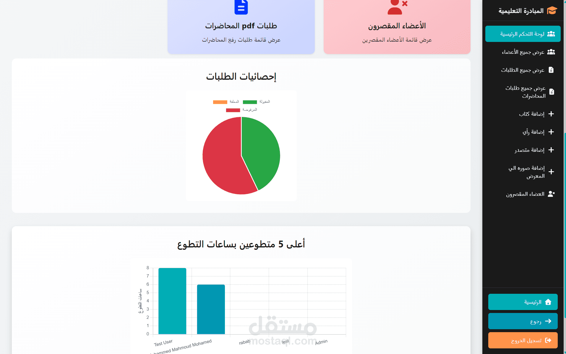 لوحة تحكم لإدارة المحتوى والمتطوعين والتبرعات.