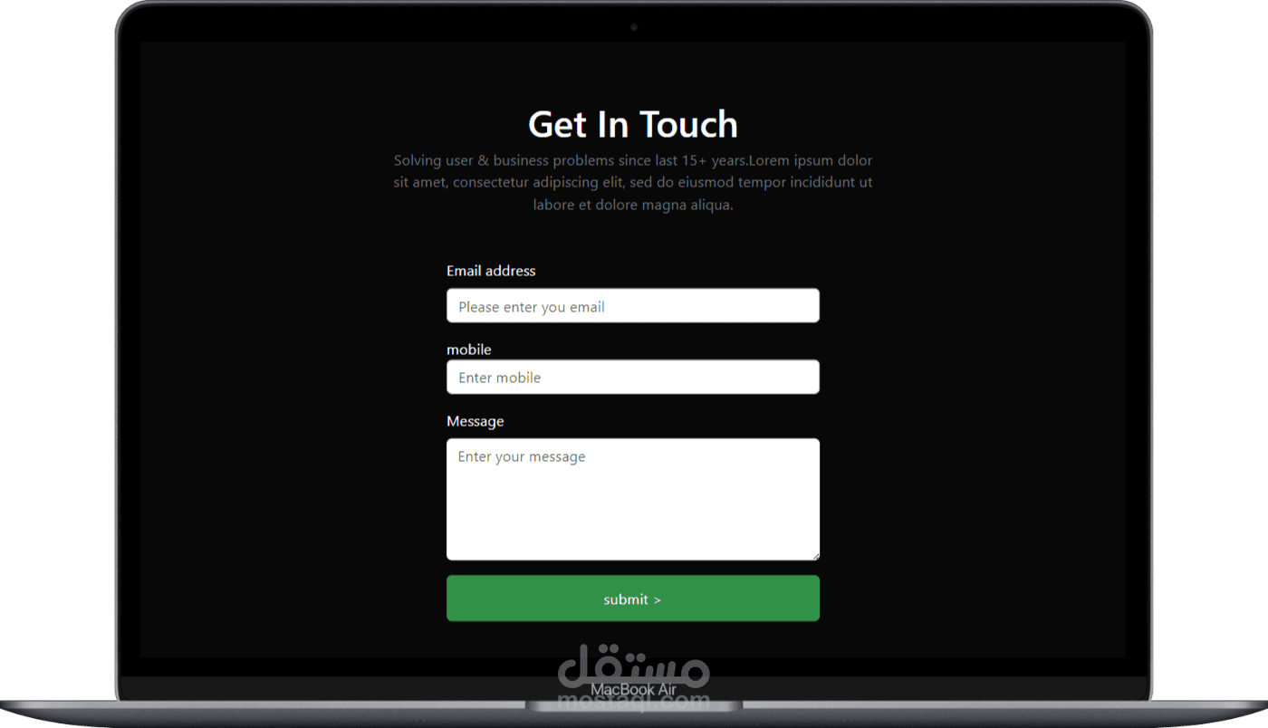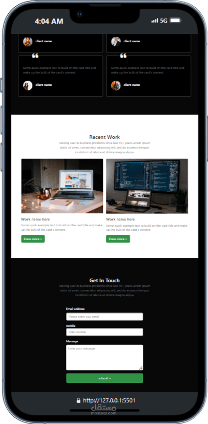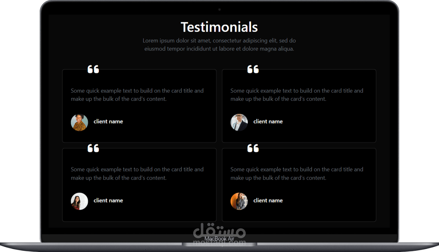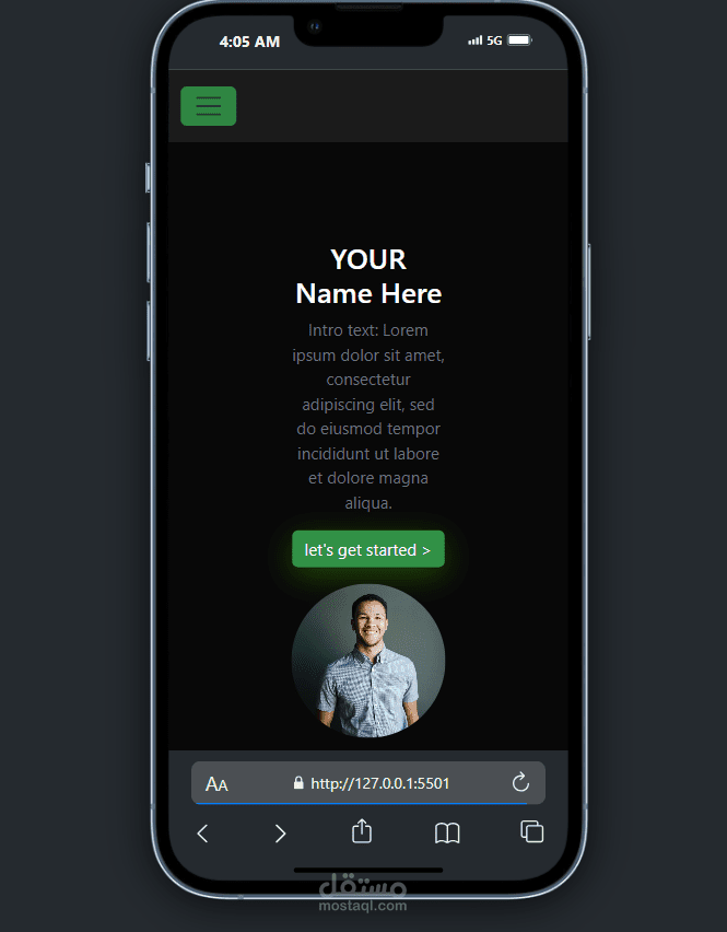 تصميم واجهة امامية لمشروع بورتفوليو متجاوب مع جميع شاشات الموبايل و اللابتوب باستخدام html , css , bootstrap