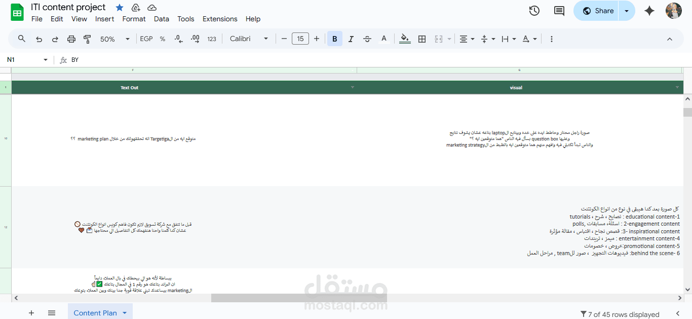 أقدّم لك محتوى جذاب ومميز ضمن خطة تسويقية مصممة خصيصًا لمشروعك لتحقيق أفضل النتائج لمدة اسبوع