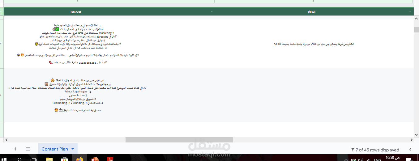 •إنشاء محتوى للسوشيال ميديا: بوستات، ريلز، نصوص إعلانية، ومقالات للمدونات تساعد في زيادة التفاعل وتحويل المتابعين إلى عملاء.