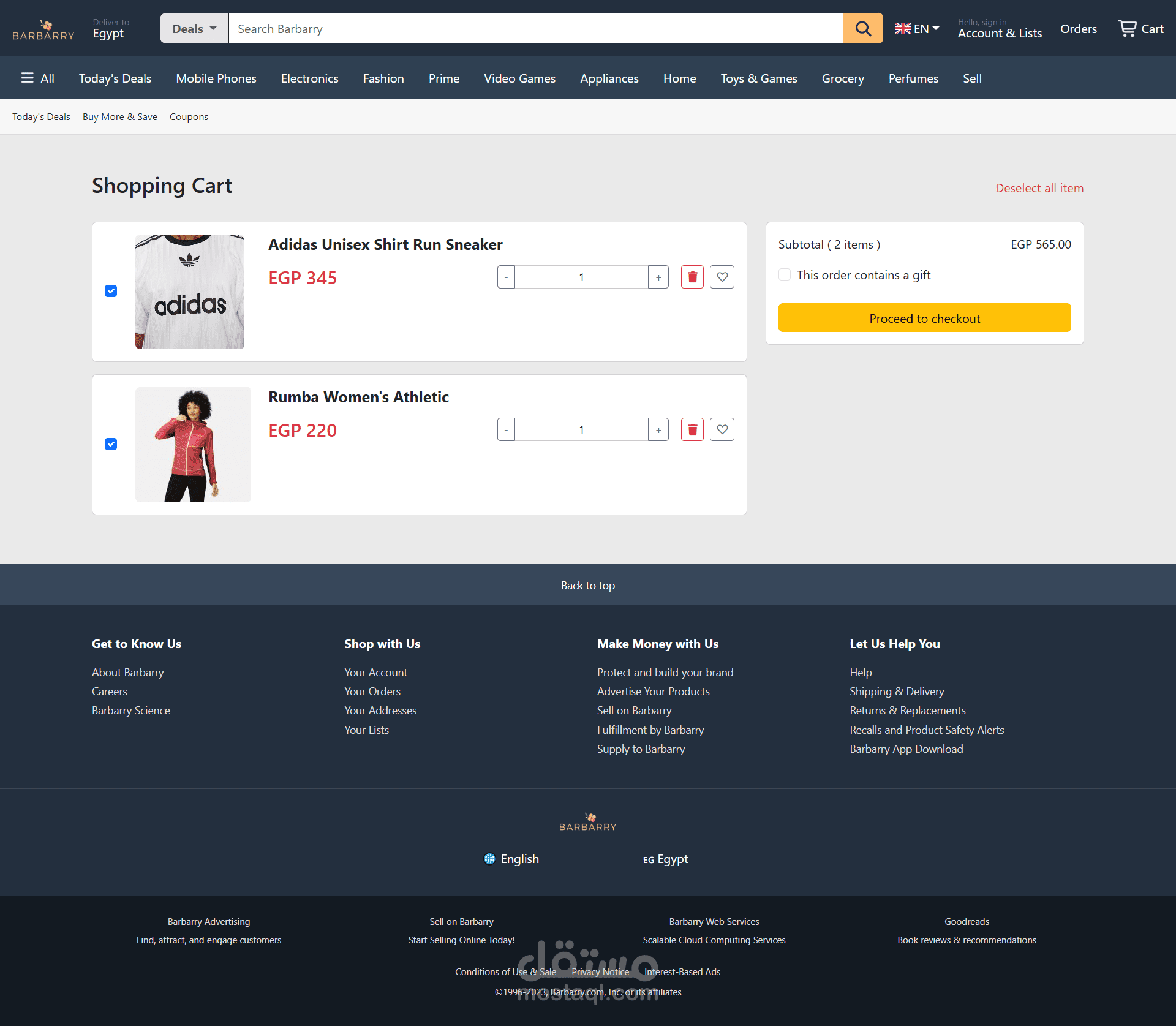 صفحه تحتوي علي قائمه المشتريات (السله) التي قمت باضافه المنتجات فيها.