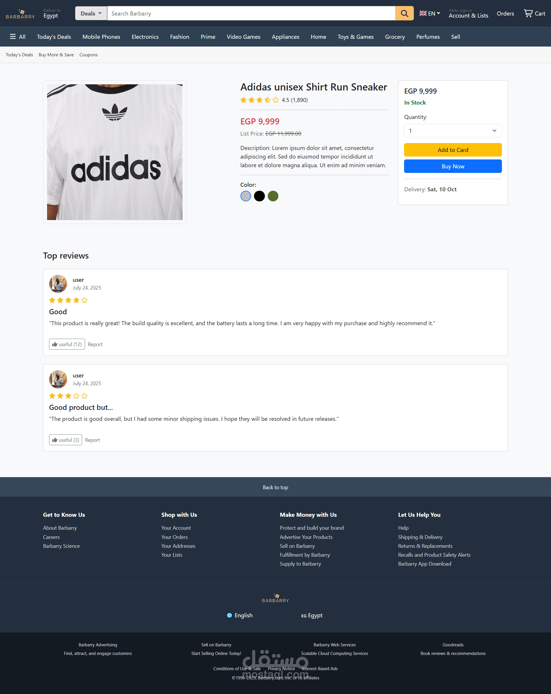 صفحه تحتوي علي معلومات المنتج و تعليقات العملاء و التقييم الخاص بالمنتج.
