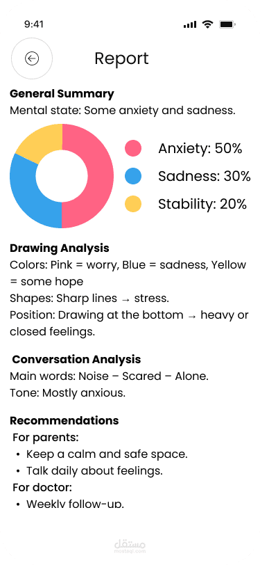 مشروع EmoCare هو تطبيق رقمي مبتكر يدمج بين العلاج بالفن وتقنيات الذكاء الاصطناعي للكشف المبكر عن الحالة النفسية للأطفال في مناطق النزاع. يعتمد على تحليل رسومات الأطفال لتحديد مؤشرات مثل الحزن والقلق والغضب بدقة عالية، ويوفر بيئة تفاعلية آمنة للتعبير عن المشاعر عبر شخصيات كرتونية، إضافة إلى تقارير مبسطة للأهل وتحليلات متقدمة للأخصائيين. يهدف المشروع إلى خفض مستويات القلق والاكتئاب، تعزيز الثقة بالنفس، ورفع الوعي بأهمية التدخل النفسي المبكر.