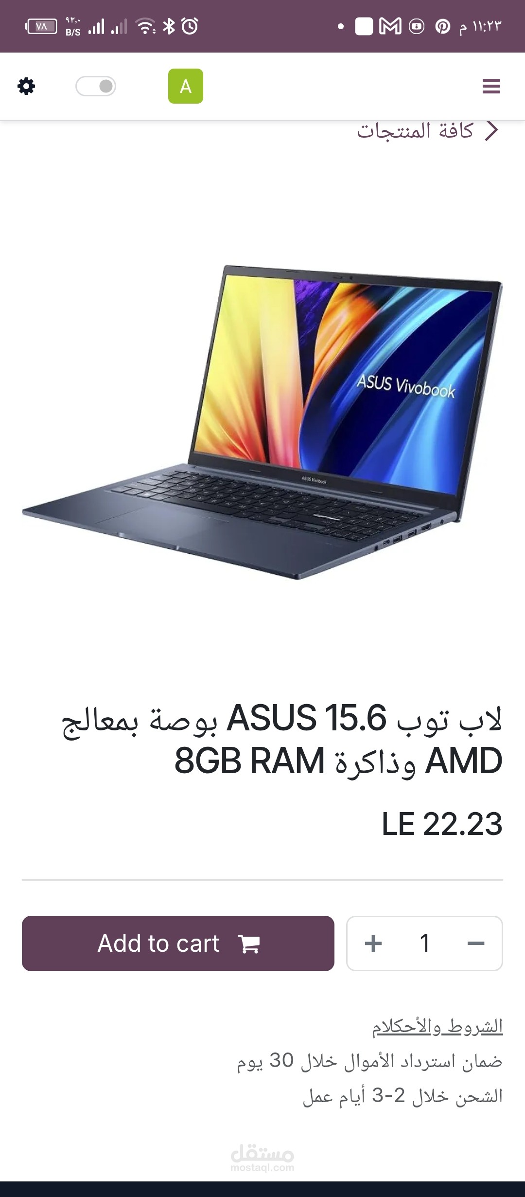 "تم نشر وإضافة لابتوب ASUS على منصة Odoo بشكل كامل، مع إدخال كل التفاصيل والمواصفات والصور الخاصة بالمنتج. يوضح العمل القدرة على إدارة المنتجات على النظام بدقة، وضمان ظهورها بشكل منظم وجذاب للزبائن، مما يسهل عملية تصفح وشراء المنتجات عبر المتجر الإلكتروني."