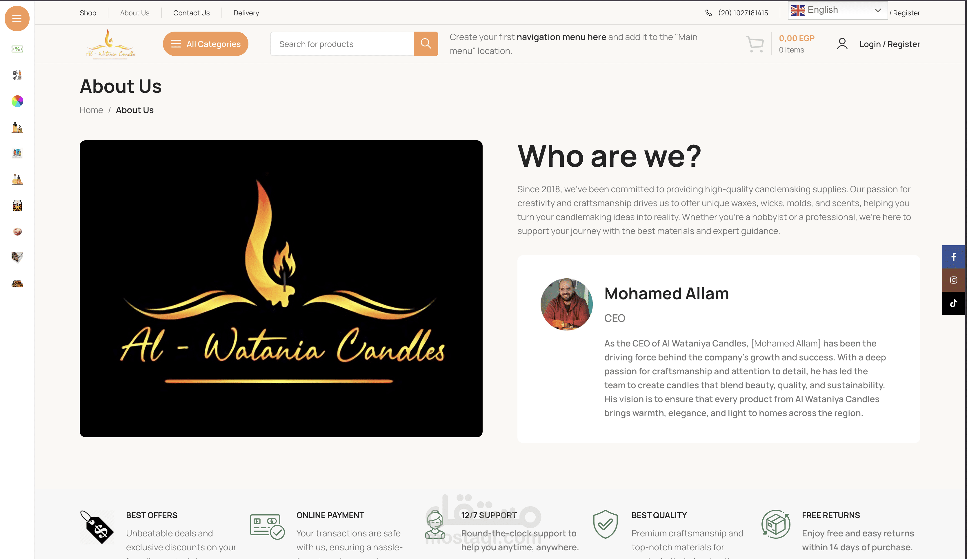 •طورت موقع شركة Al Watania Candle المتخصصة في صناعة الشموع ومنتجات الديكور.