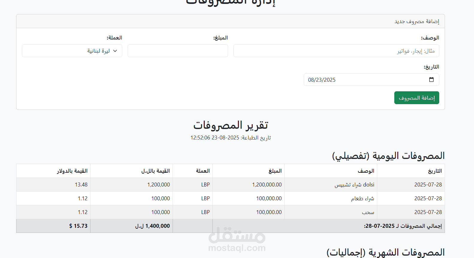 إدارة المصاريف: يساعد على تتبع وتسجيل المصاريف اليومية والشهرية للمحل، مما يسهل مراقبة التدفقات المالية وتحديد النفقات.